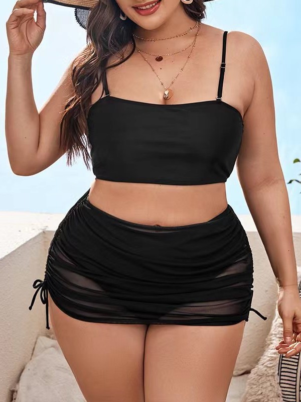 유럽과 미국의 비키니 새로운 섹시한 세트 분할 수영복 단색 국경 아마존 폭발 플러스 사이즈 수영복 블랙스토어 가기