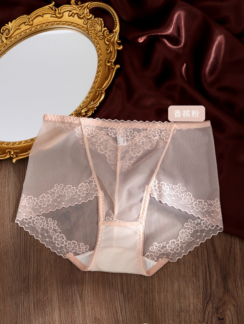 여성용 섹시한 레이스 팬티, 피부 친화적인 통기성, 무봉제 멀버리 실크 바닥 가랑이, 중간 하이 웨이스트 팬티 도매