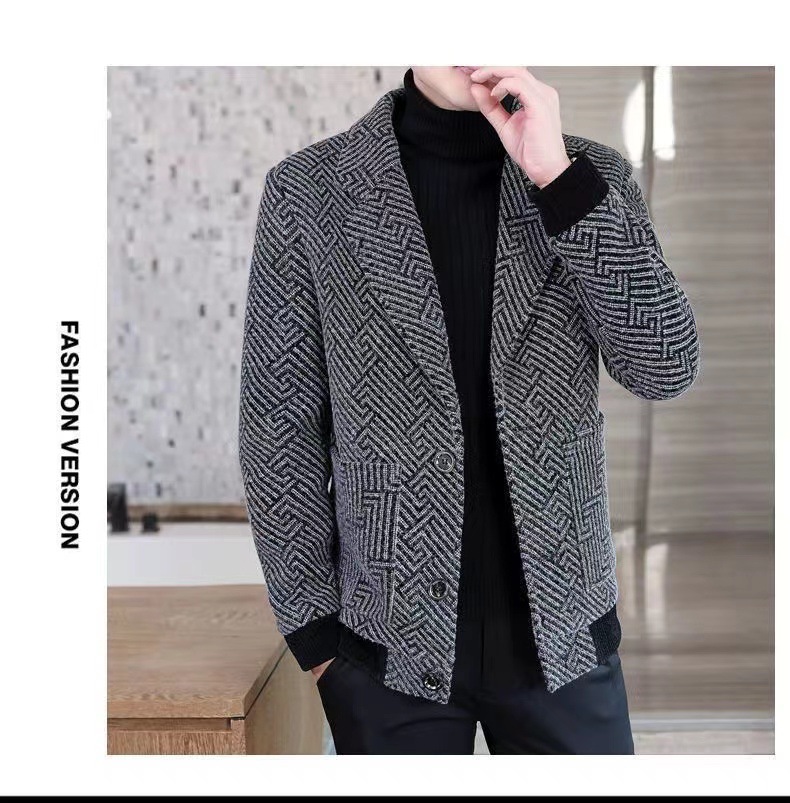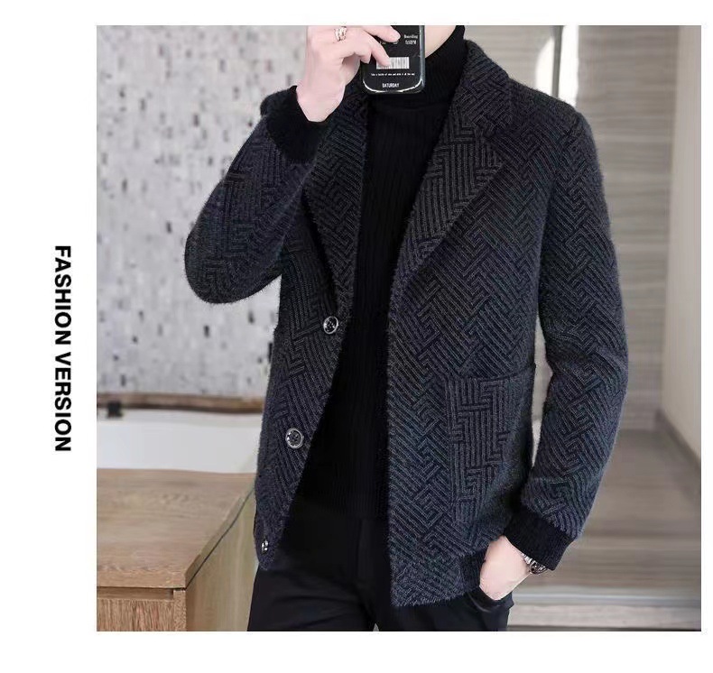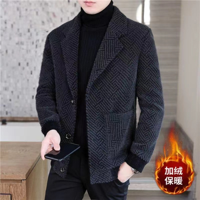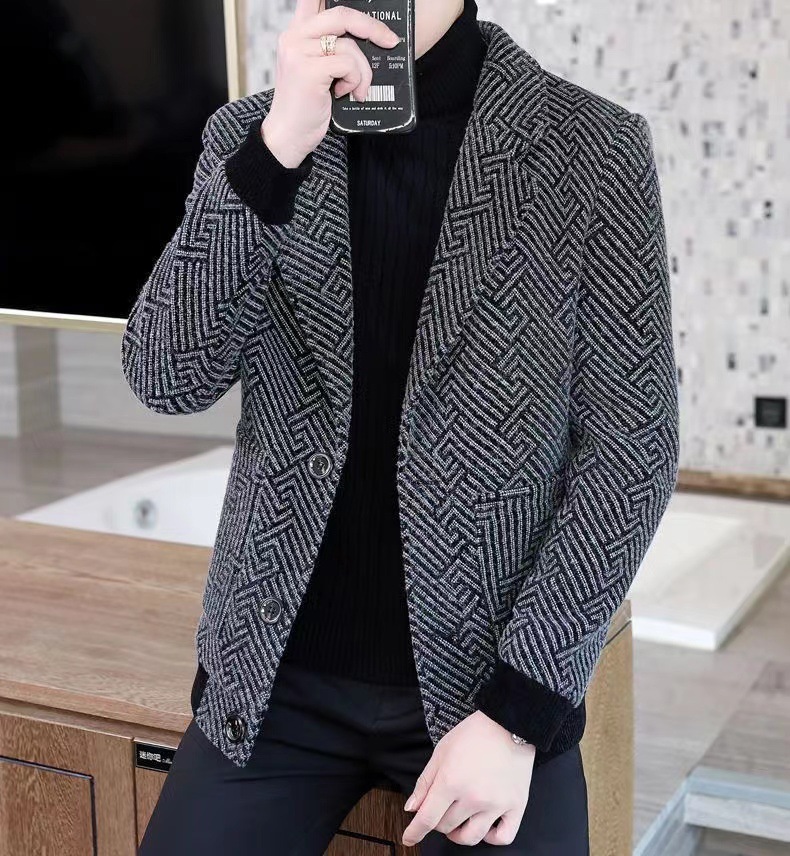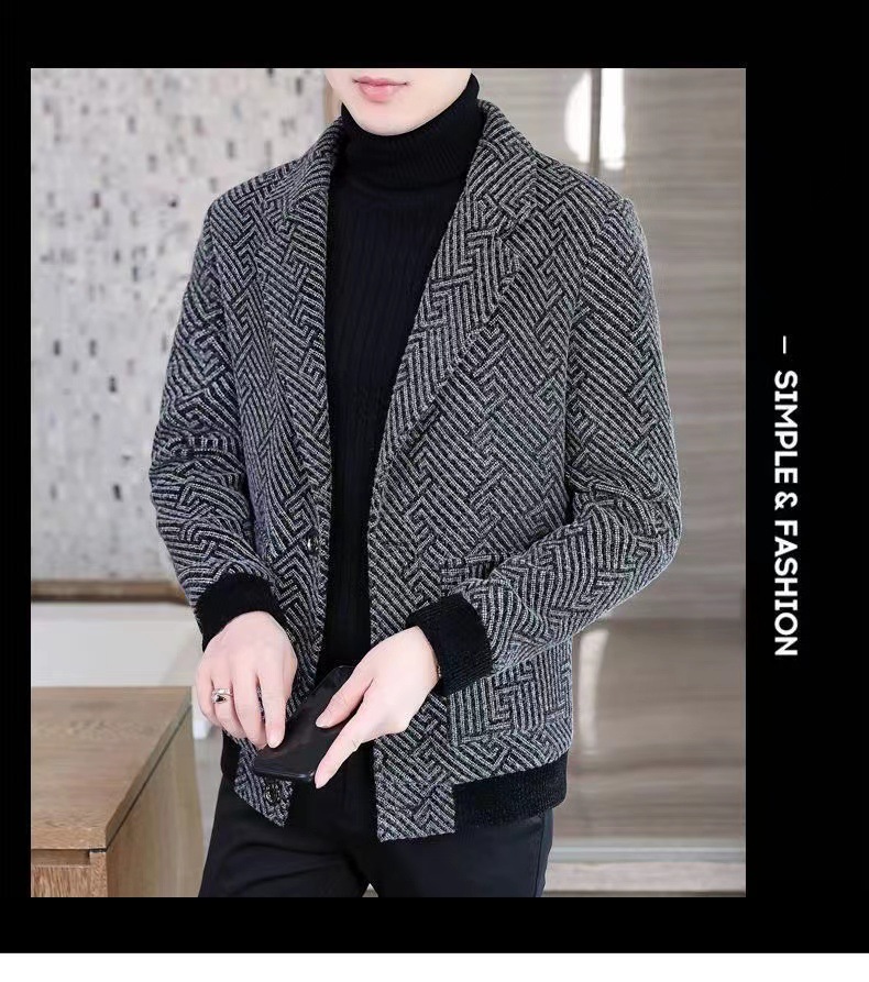 가을과 겨울 2025 새로운 기모 두꺼운 남성 중년 비즈니스 캐주얼 세트 울 세트 재킷스토어 가기