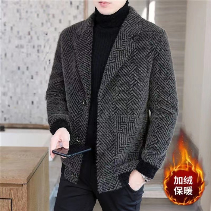 가을과 겨울 2025 새로운 기모 두꺼운 남성 중년 비즈니스 캐주얼 세트 울 세트 재킷
