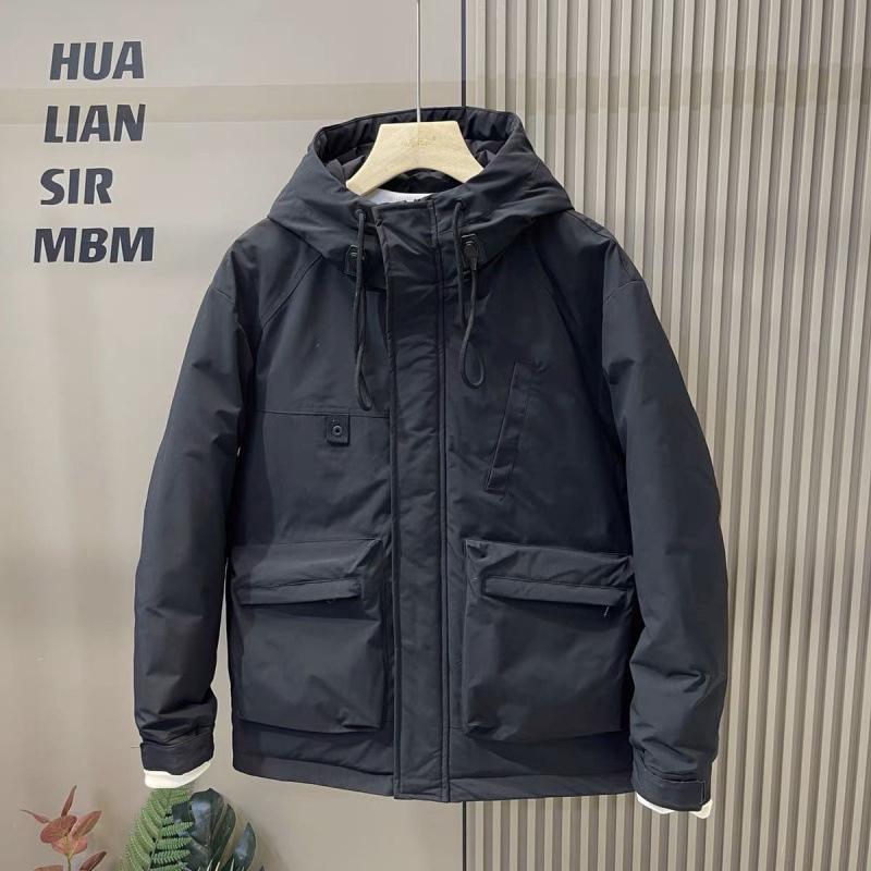 겨울 새로운 툴링 다운 재킷 남자의 홍콩 스타일 단색 오리 따뜻한 재킷 한국 스타일 두꺼운 후드 다운 재킷