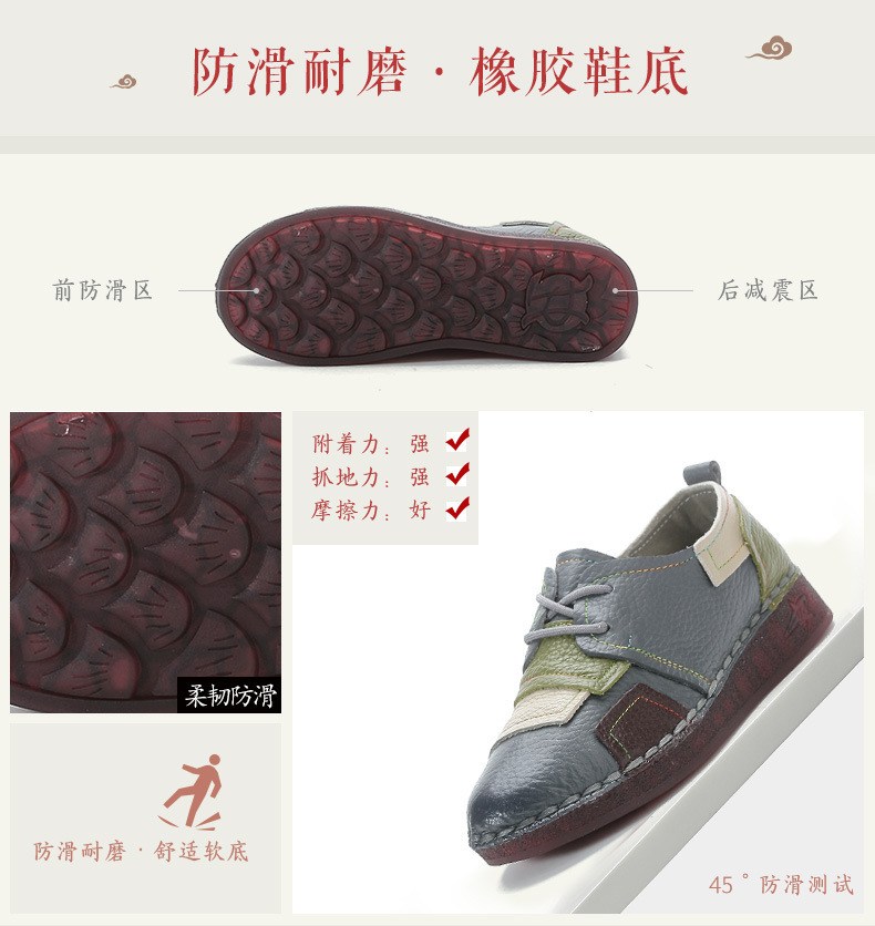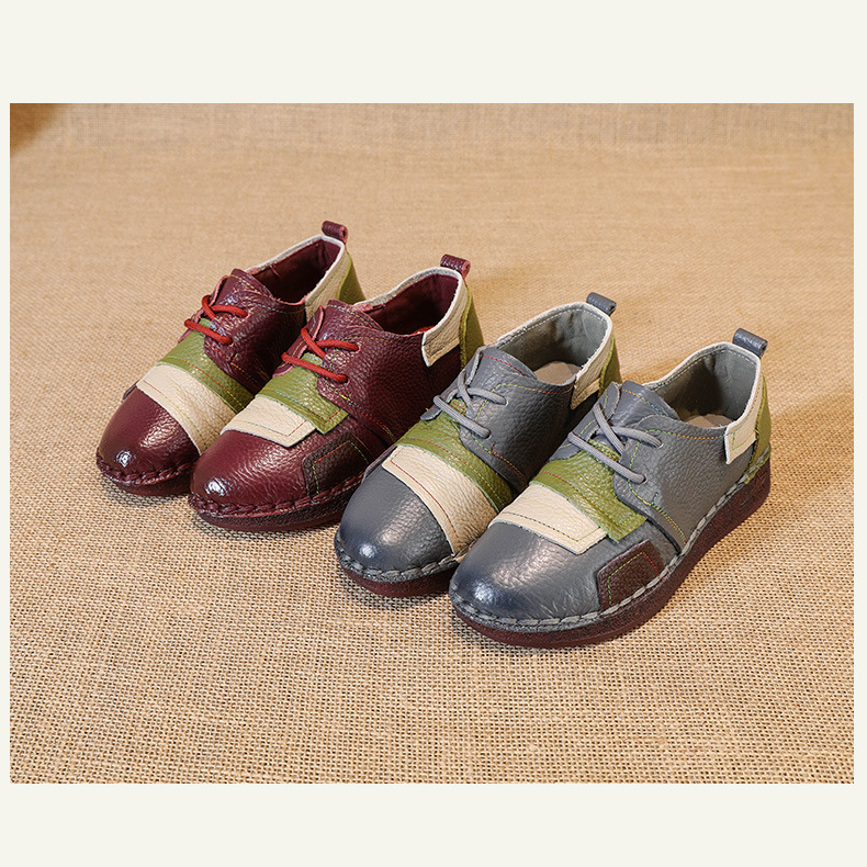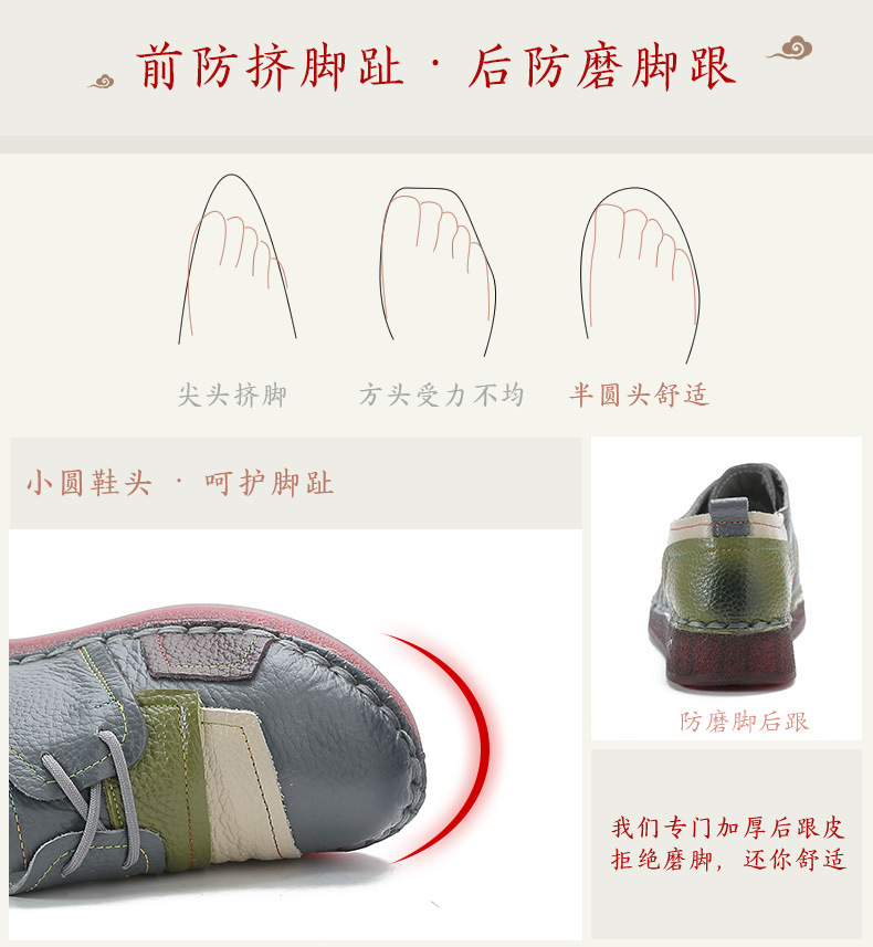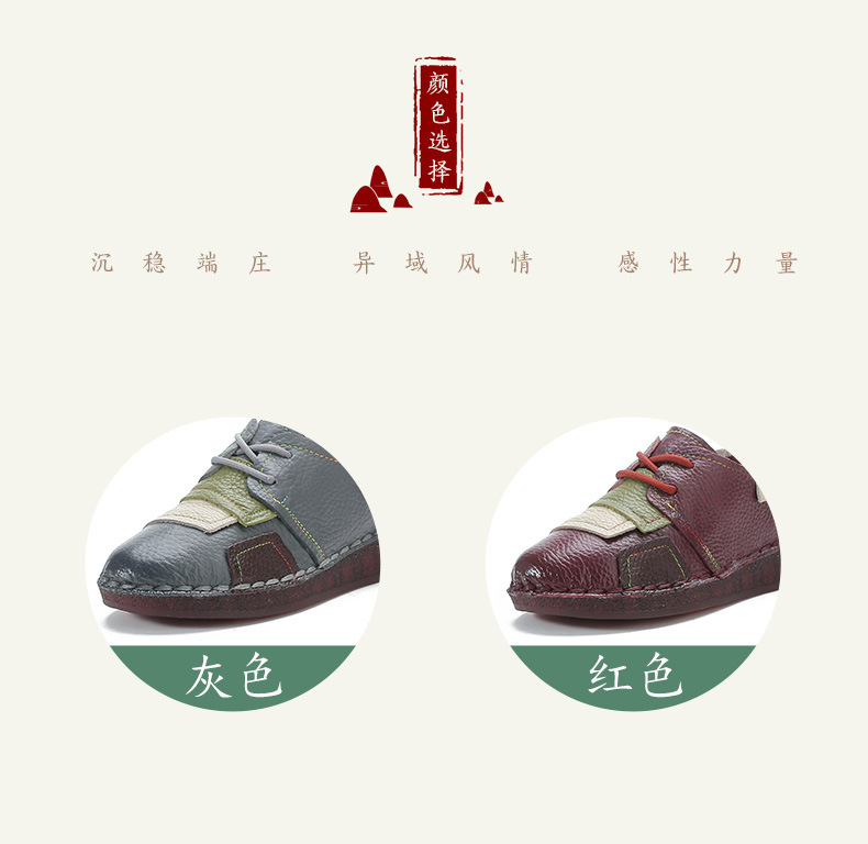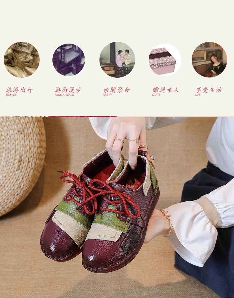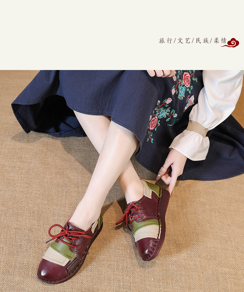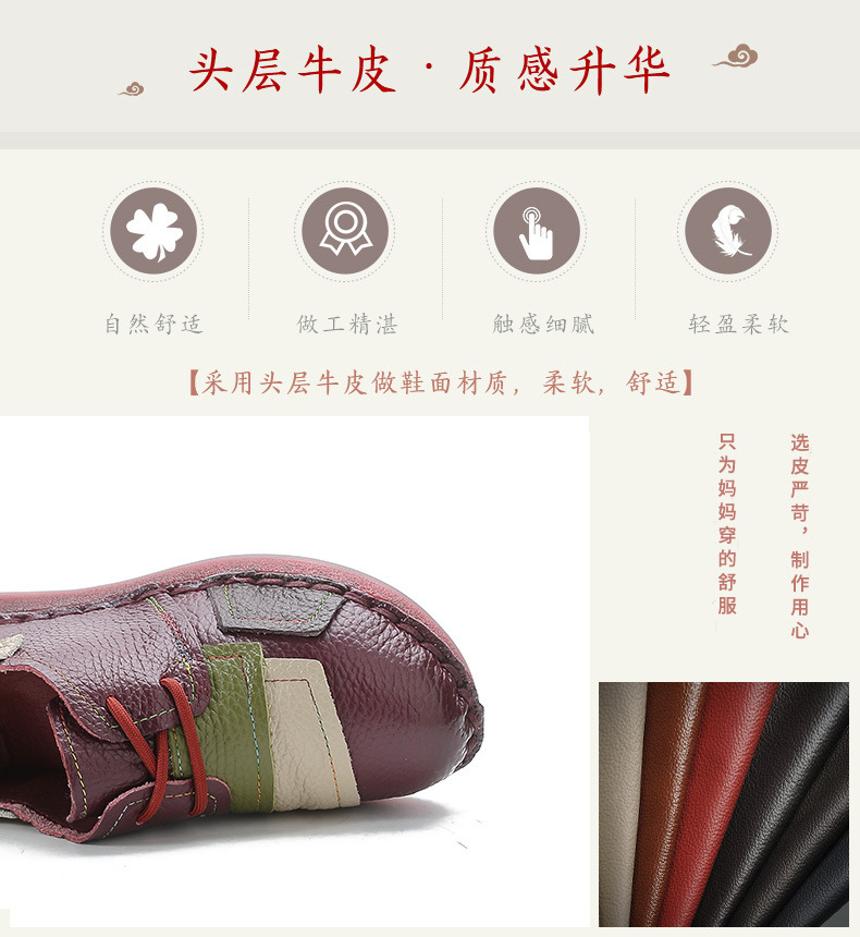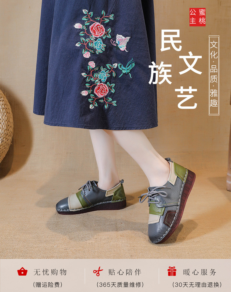 2023 새로운 스타일 탑 레이어 Cowhide 플랫 캐주얼 여성 신발 민족 스타일 컬러 매칭 정품 가죽 신발 중년 및 노인 어머니 코튼 신발스토어 가기