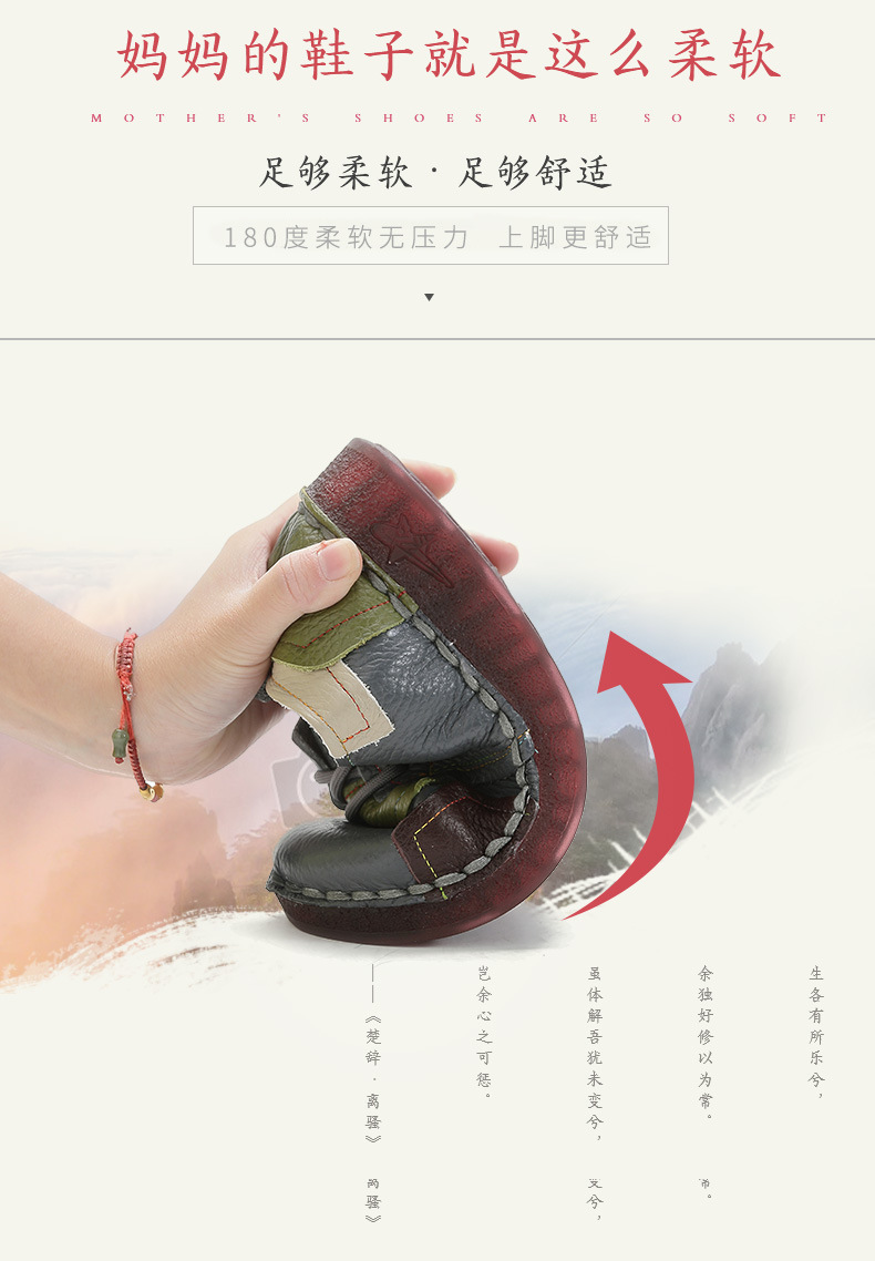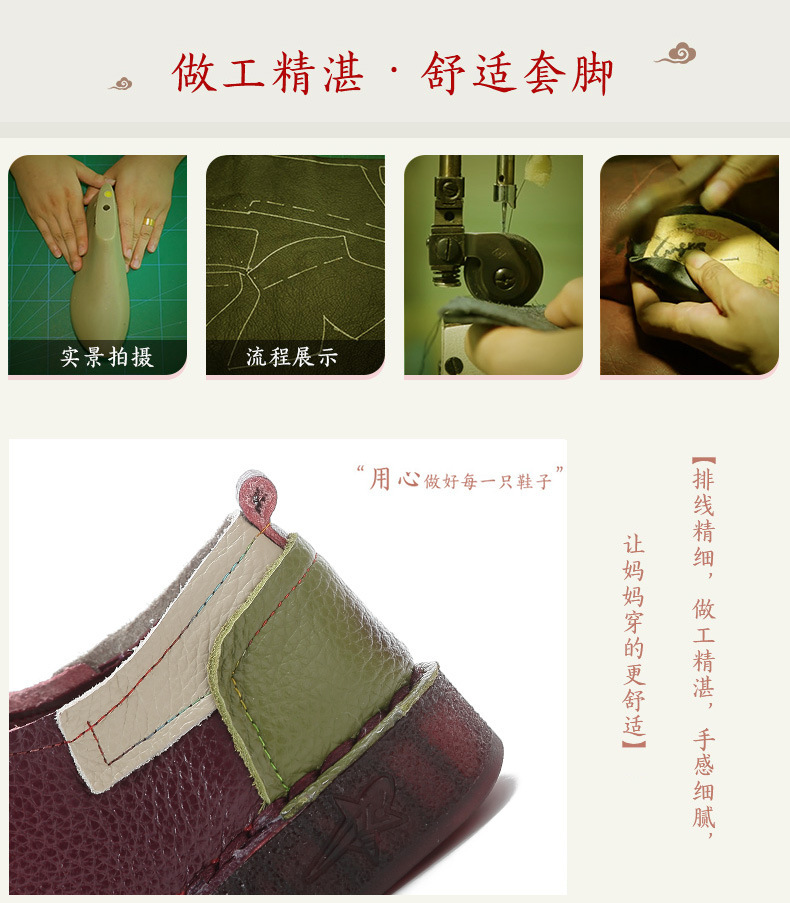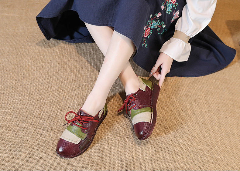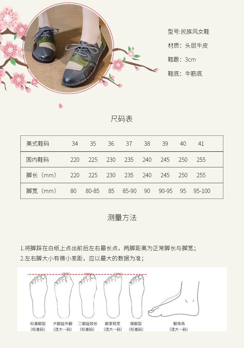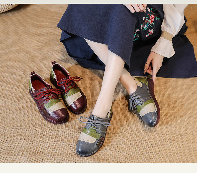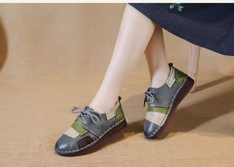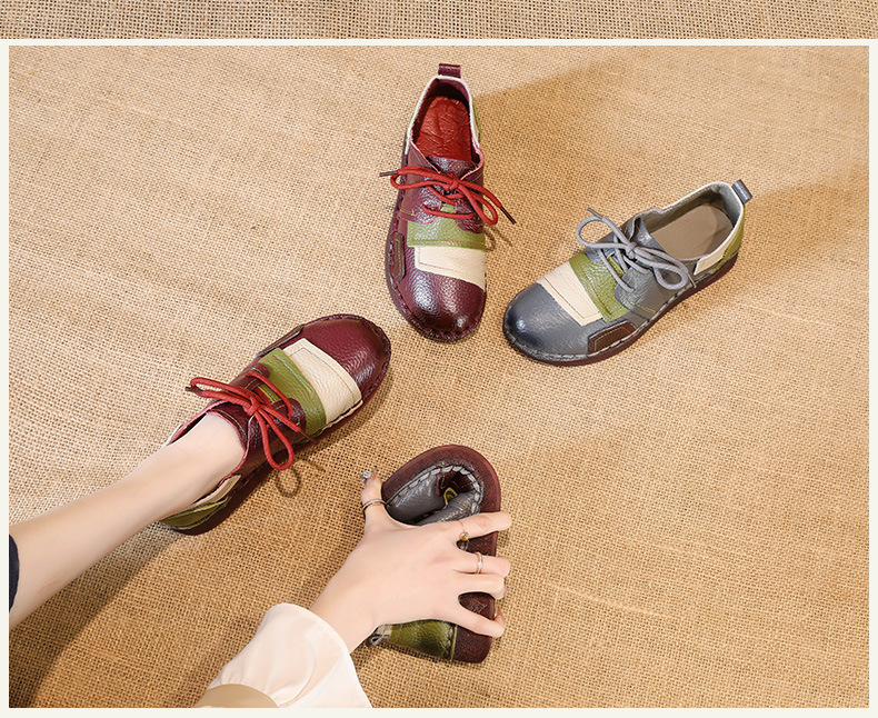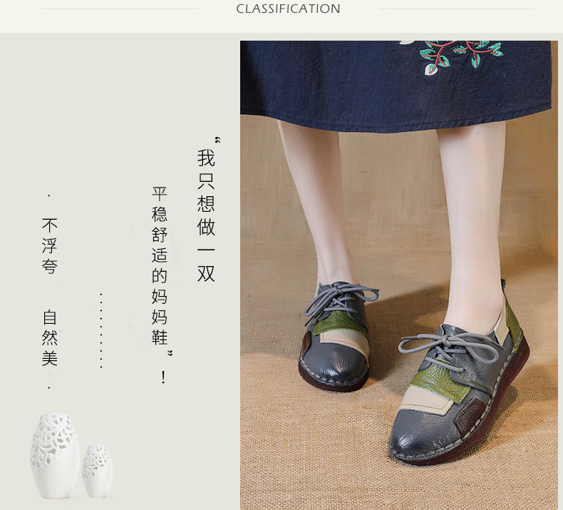 2023 새로운 스타일 탑 레이어 Cowhide 플랫 캐주얼 여성 신발 민족 스타일 컬러 매칭 정품 가죽 신발 중년 및 노인 어머니 코튼 신발스토어 가기