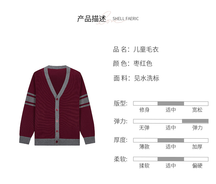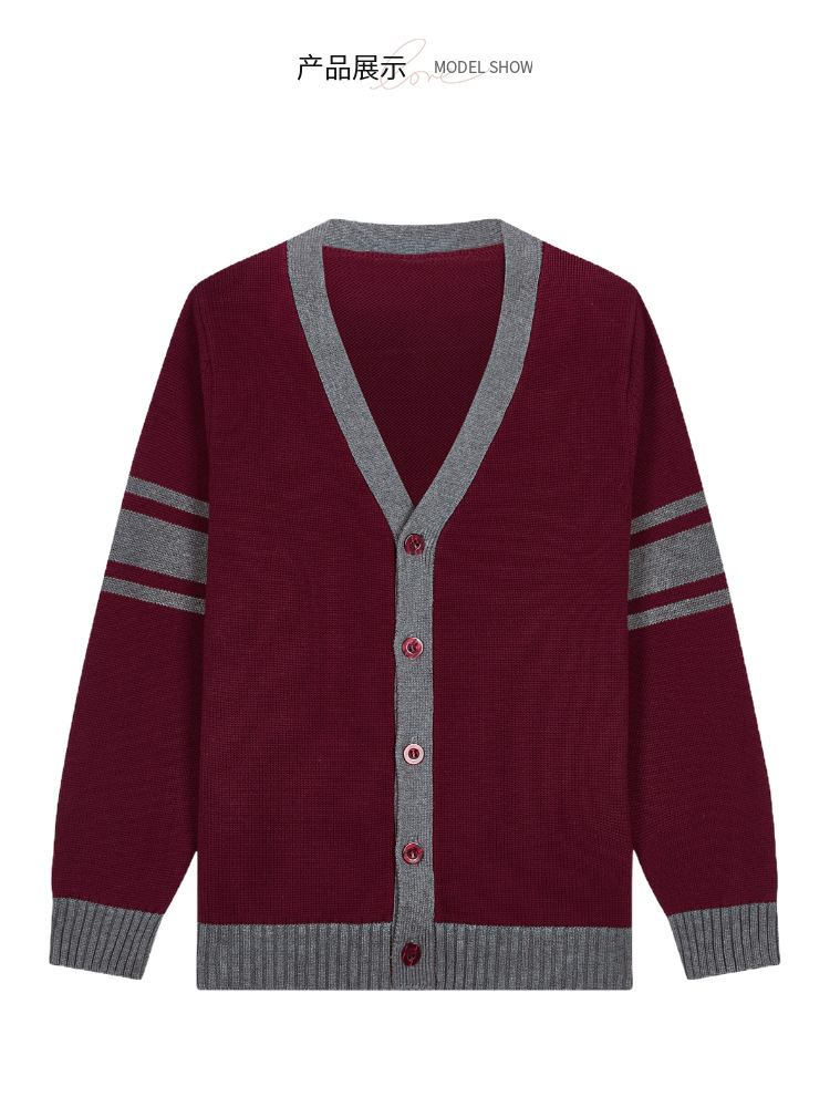 초등학생과 중학생 Jujube Red 스웨터 카디건 영국 아카데미 스타일 학교 유니폼 탑 코튼 버건디 남학생과 여학생을위한 니트 외부스토어 가기