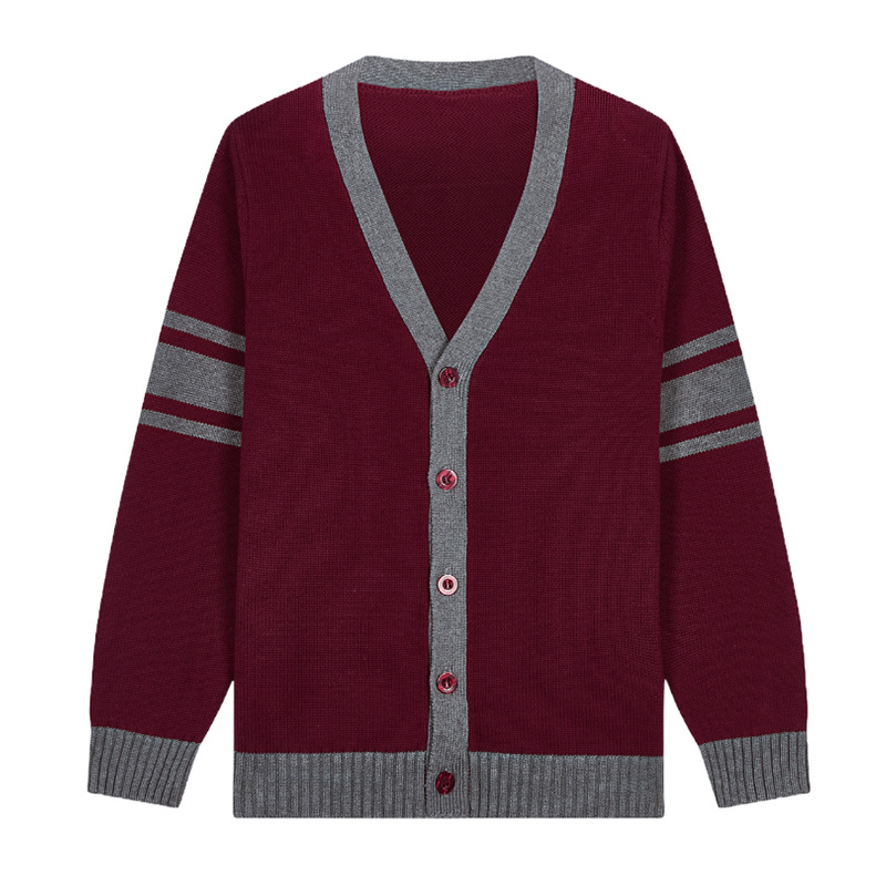 초등학생과 중학생 Jujube Red 스웨터 카디건 영국 아카데미 스타일 학교 유니폼 탑 코튼 버건디 남학생과 여학생을위한 니트 외부