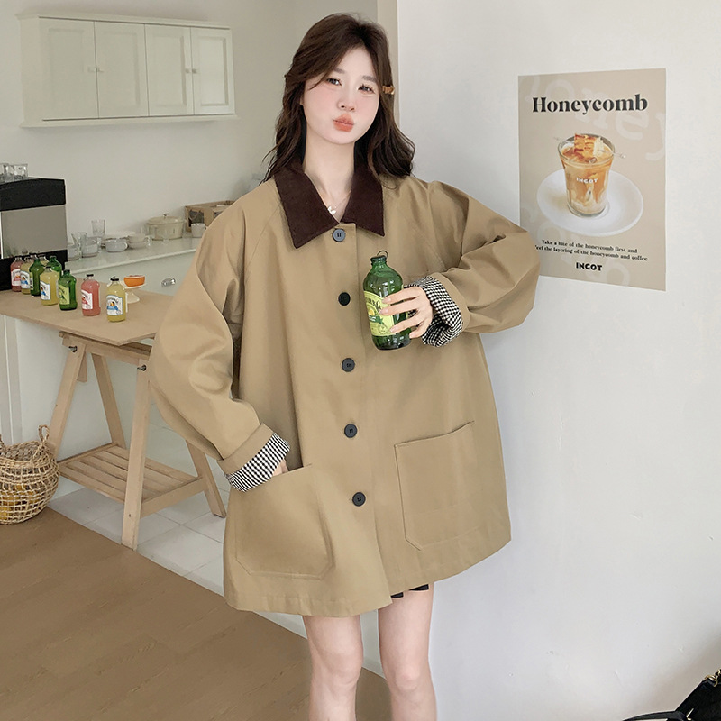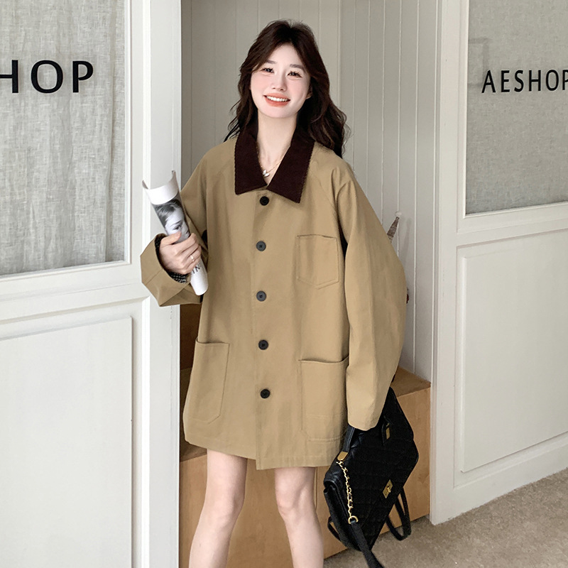 리얼 샷 패션 우아한 콘트라스트 코트 2025 새로운 한국 중간 길이의 영국 스타일 빈티지 오버코트스토어 가기