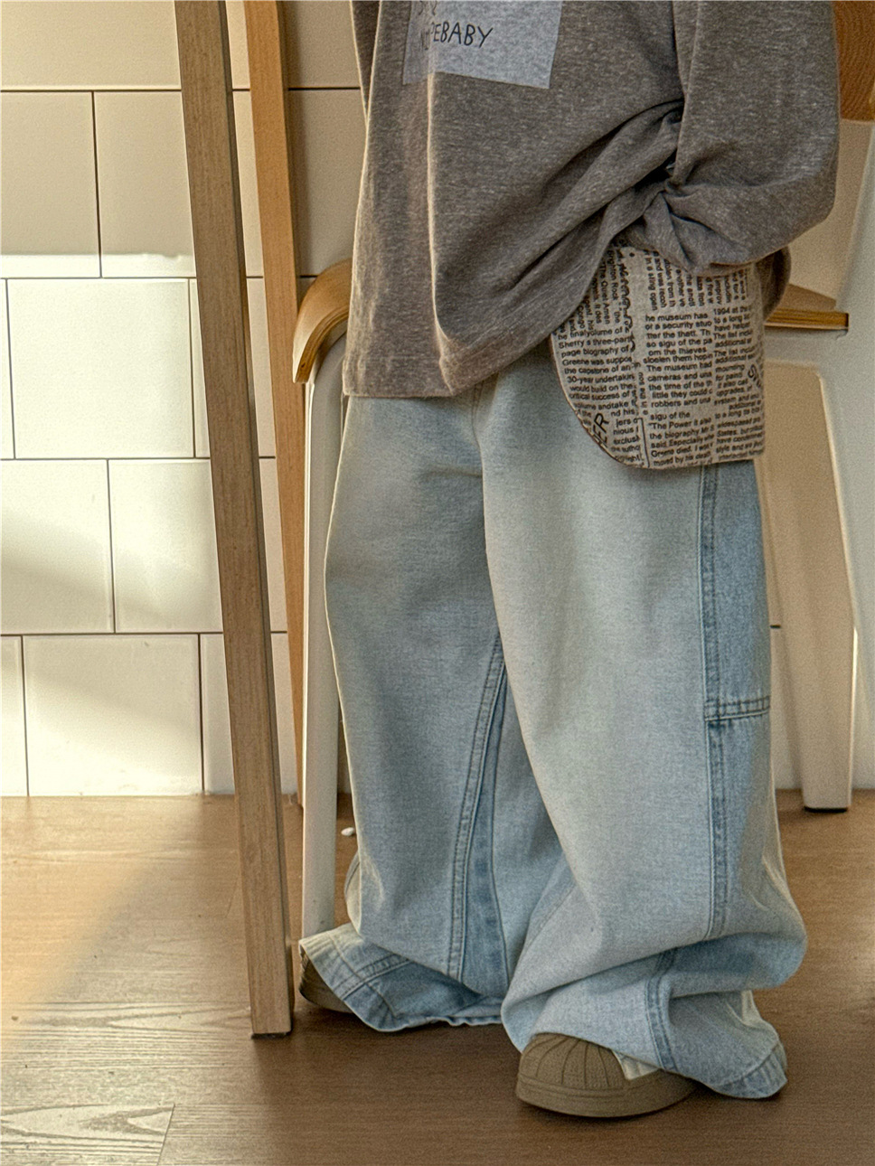 스니돌스 봄가을 아동용 청바지 한국 스타일 레트로 연청 스플라이스 중대형 아동용 세련된 청바지