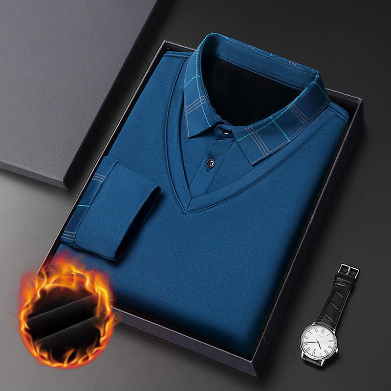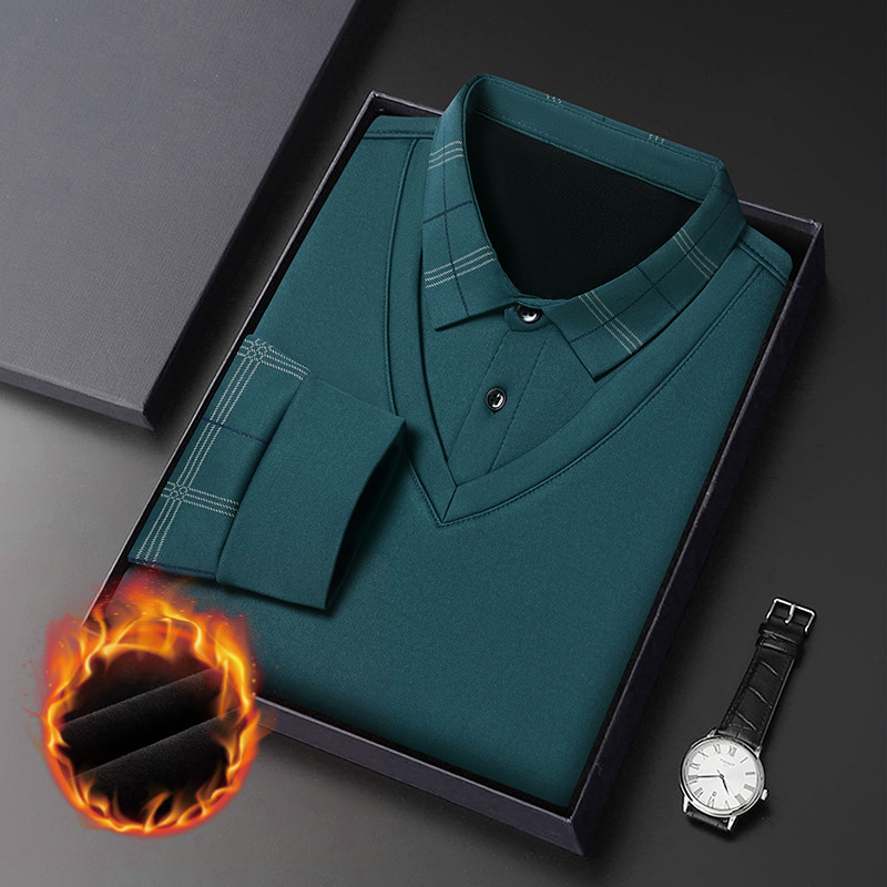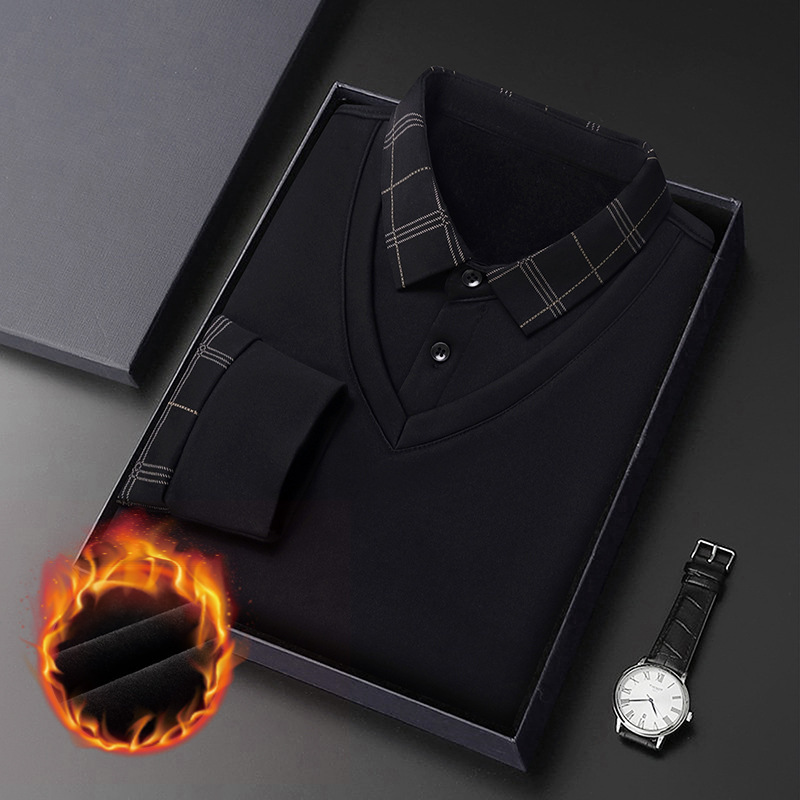 아빠의 가짜 두 중년 남성 폴로 셔츠 칼라 긴 소매 격자 티셔츠 기모 남자 탑