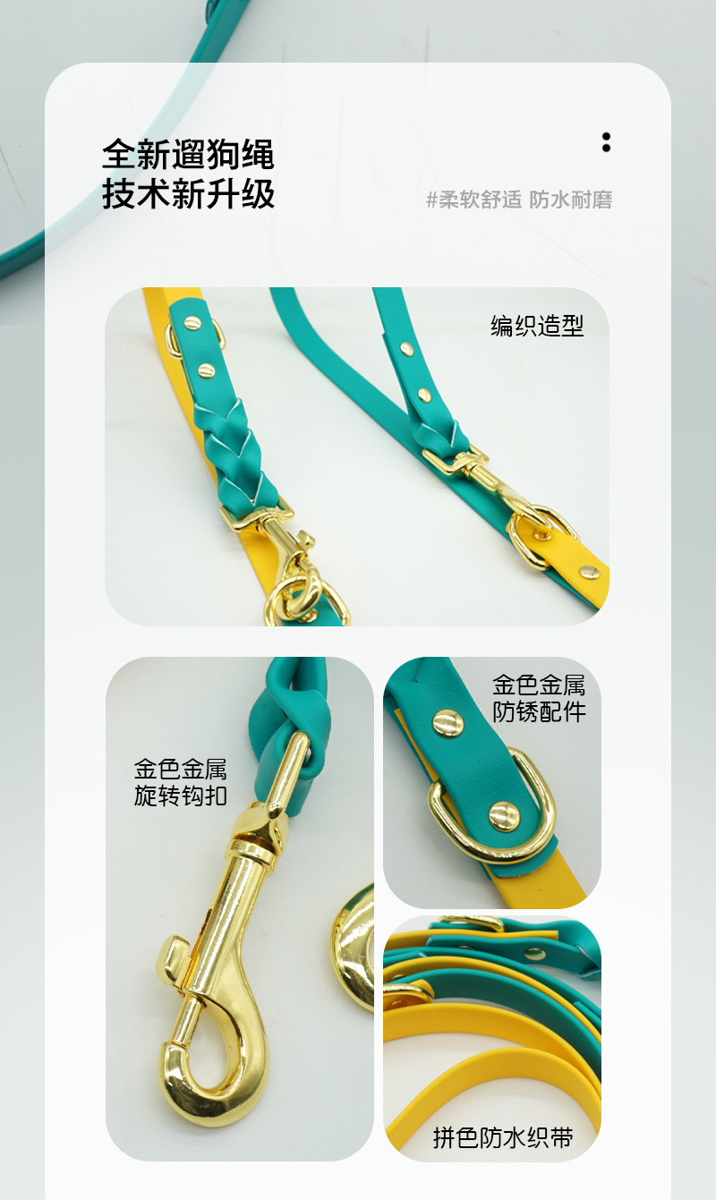 PVC 방수 내마모성 개 가죽 끈 2 색 스티칭 애완 동물 가죽 끈 개 가죽 끈 애완 동물 용품 제조업체 직접 공급스토어 가기