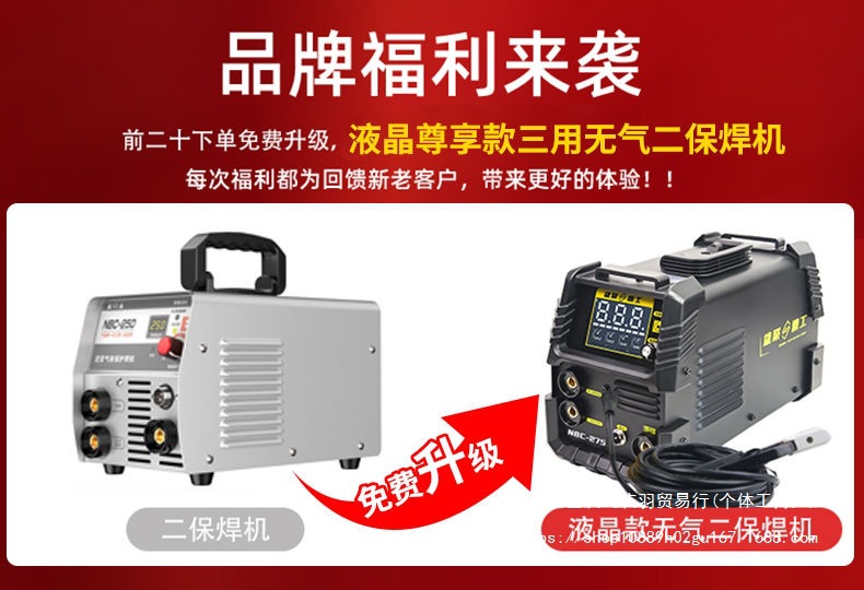 • 무료 업그레이드: LCD 전용 모델로 업그레이드한 선착순 20명 - 275 1위안 업그레이드 모델: 용접건 3m 용접 와이어 5롤