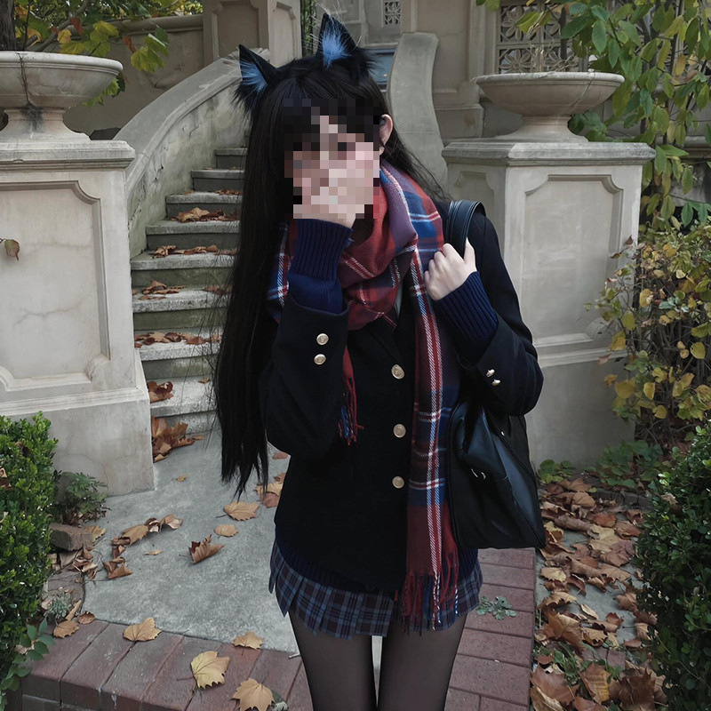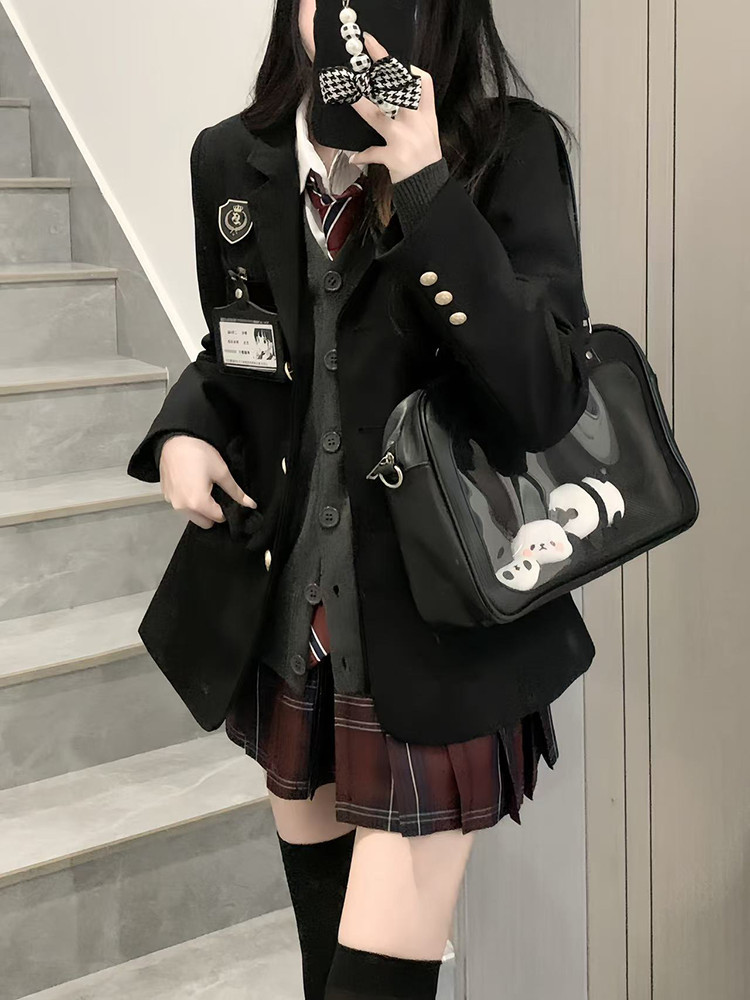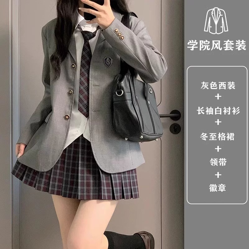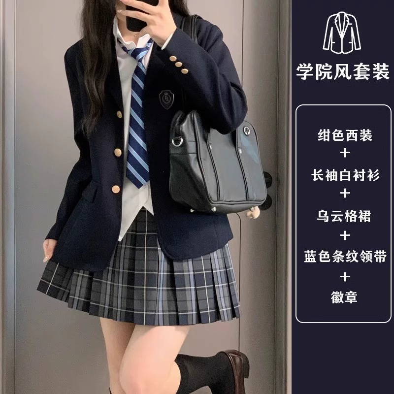 A3I 애니메이션 수석 자매 jk 유니폼 세트 여자 가을 겨울 대학 스타일 짧은 치마 격자 스커트 카디건 세트 원스토어 가기