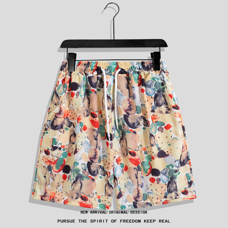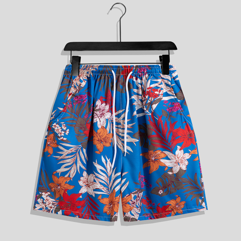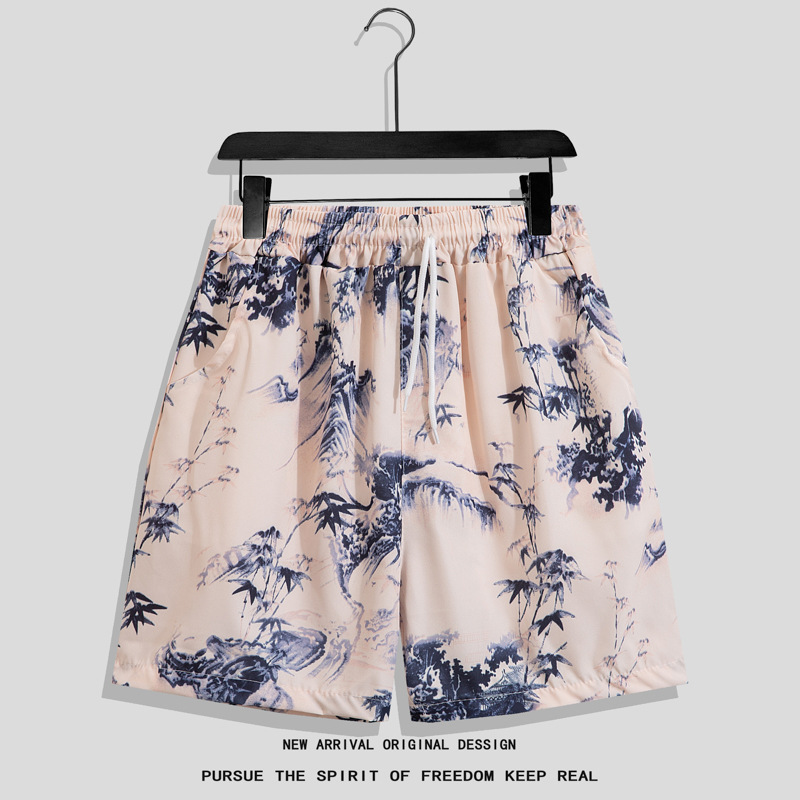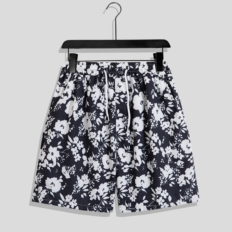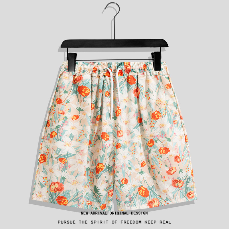 외부 착용 비치 바지 남자 여름 캐주얼 대형 바지 꽃 반바지 느슨한 스포츠 얇은 얼음 실크 빠른 건조 반바지
