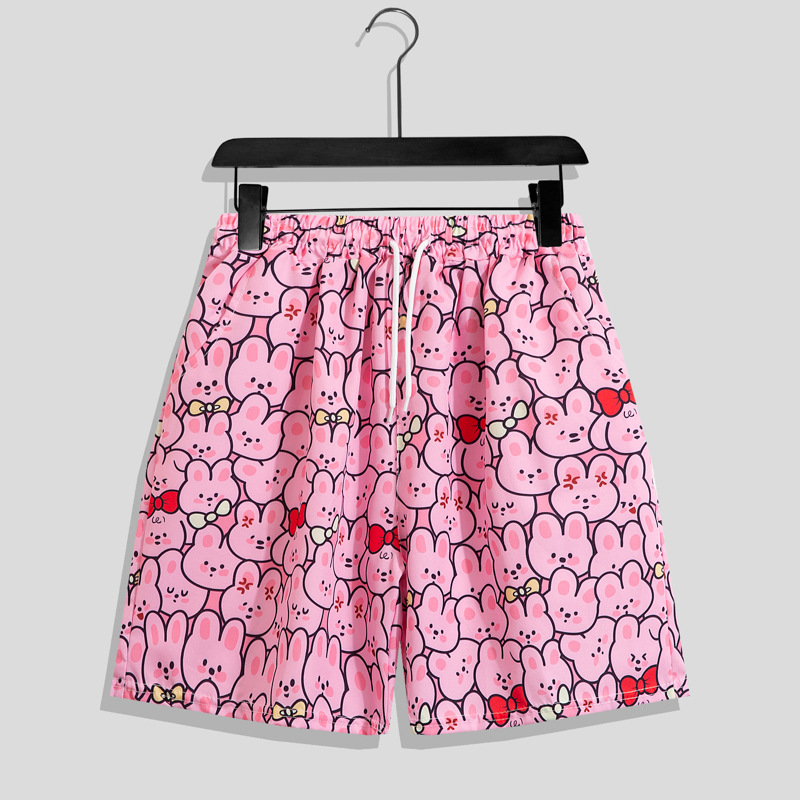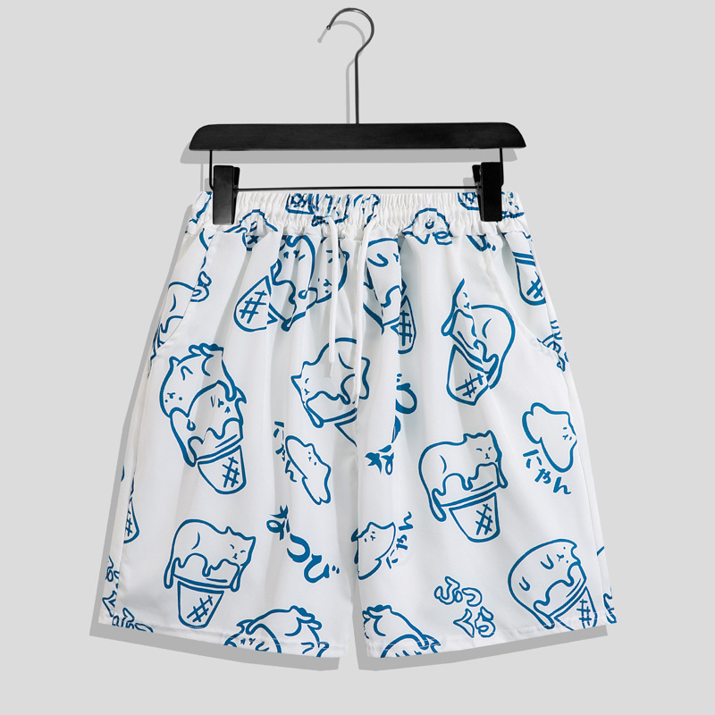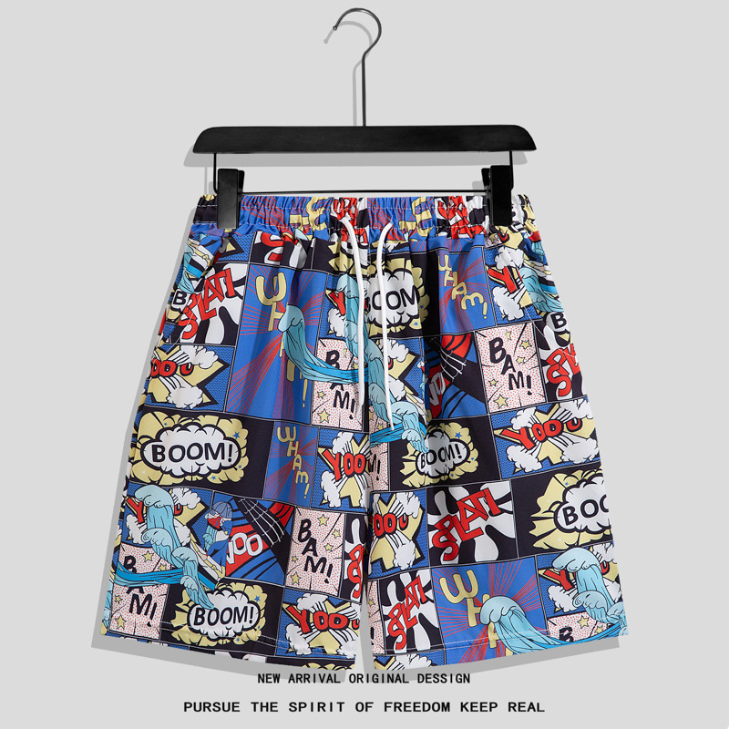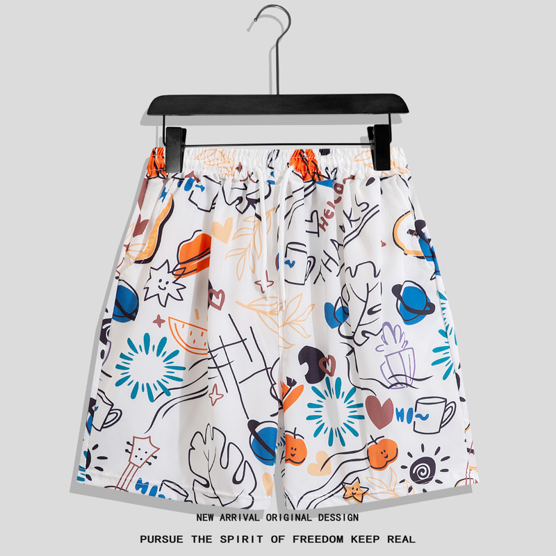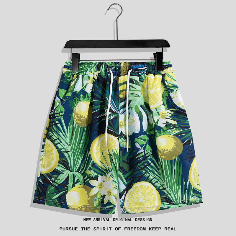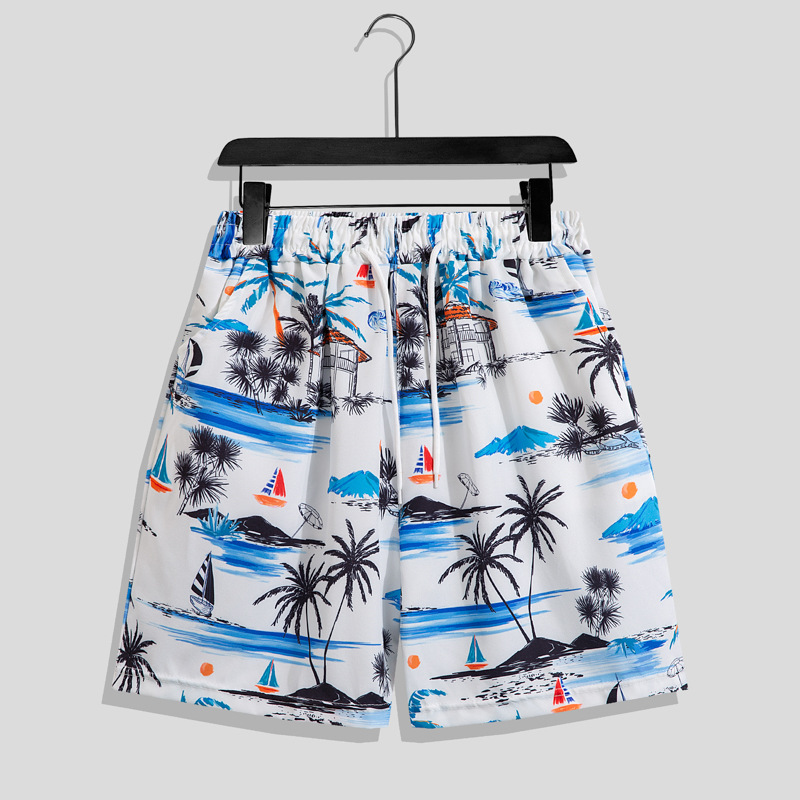외부 착용 비치 바지 남자 여름 캐주얼 대형 바지 꽃 반바지 느슨한 스포츠 얇은 얼음 실크 빠른 건조 반바지
