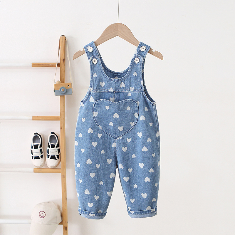 인스아동복 2025 새 아동용 작업복 한국식 소녀사랑 인쇄한 데님 작업복