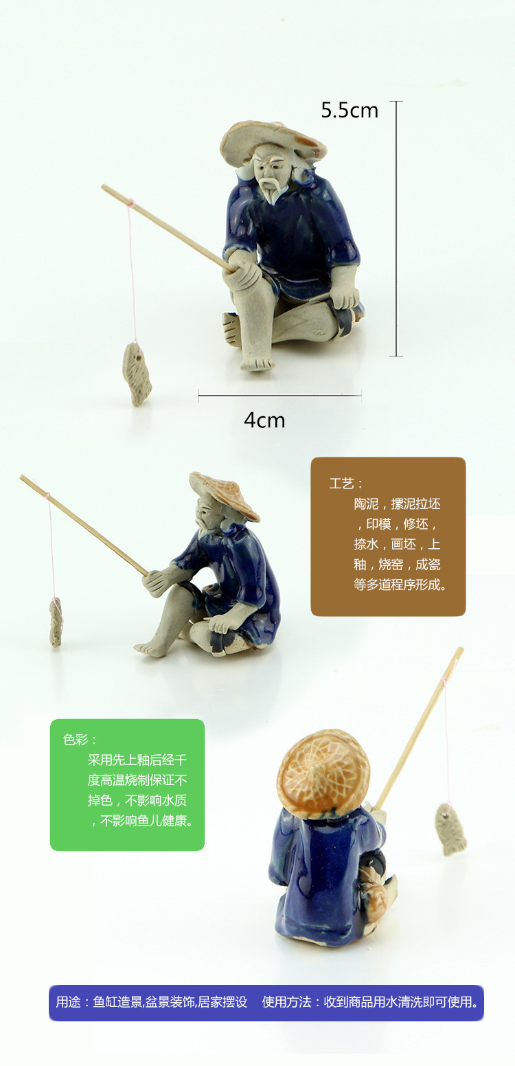 세라믹 공예 세라믹 시뮬레이션 낚시 Weng 물고기 탱크 세라믹 조경 장식 2 인치 Jiang Taigong 낚시 Weng스토어 가기