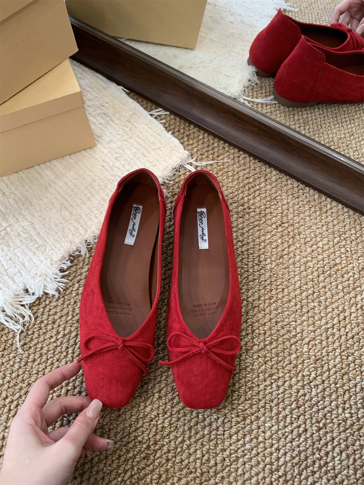 내부 높이 프랑스 스웨이드 발레 이브닝 슈즈 여성 신발 2025 새로운 봄 원피스 레드 웨딩 슈즈스토어 가기