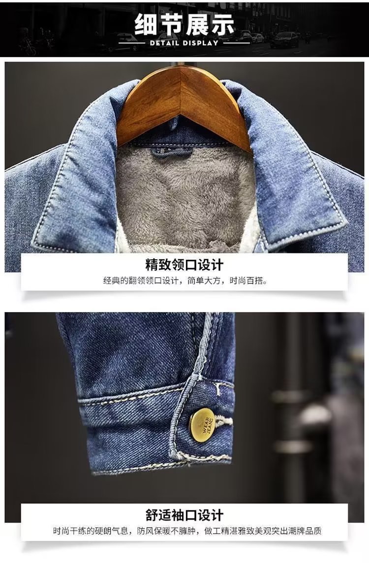 겨울 기모 두꺼운 데님 자켓 남자 한국 스타일 따뜻한 재킷 유행 남자 캐주얼 청바지