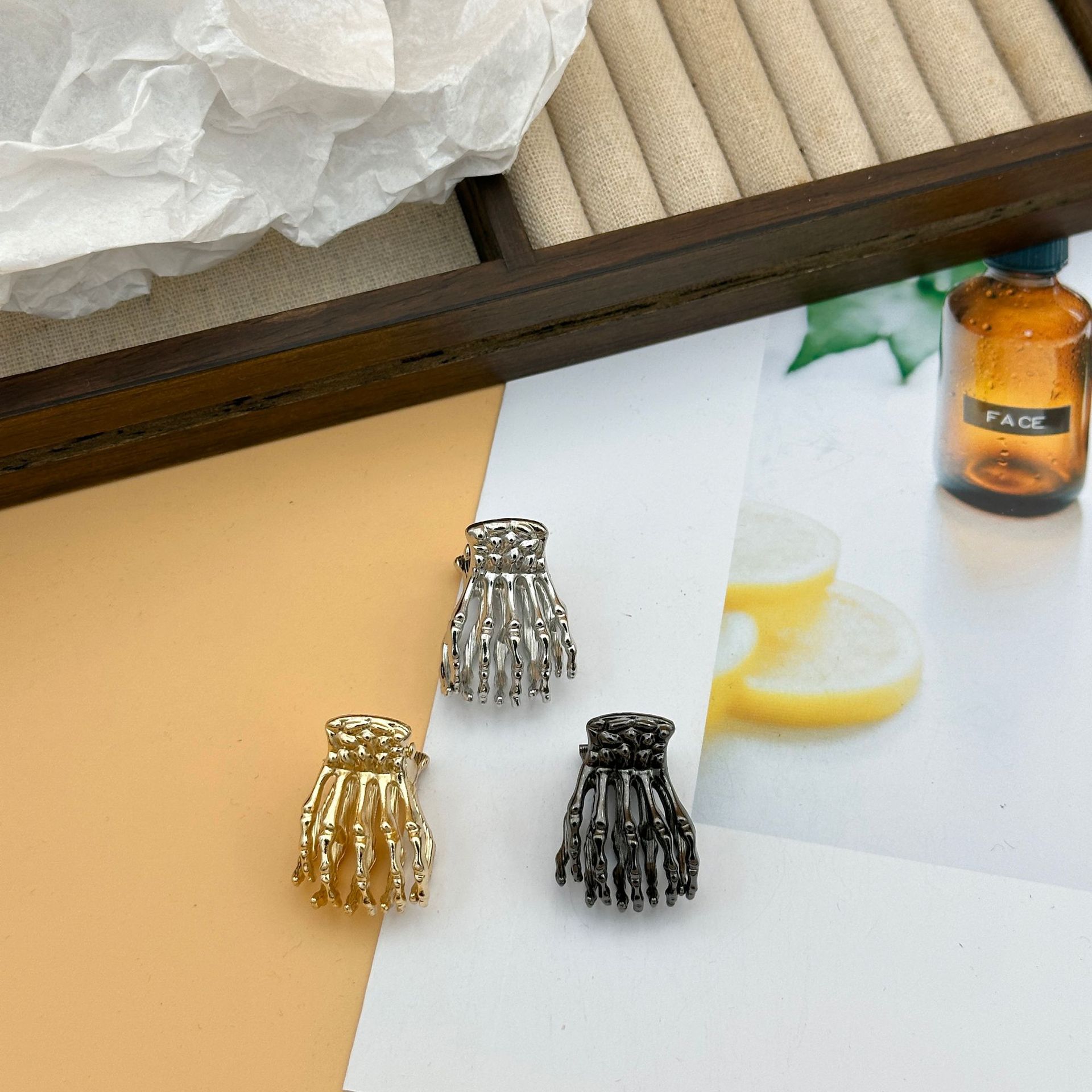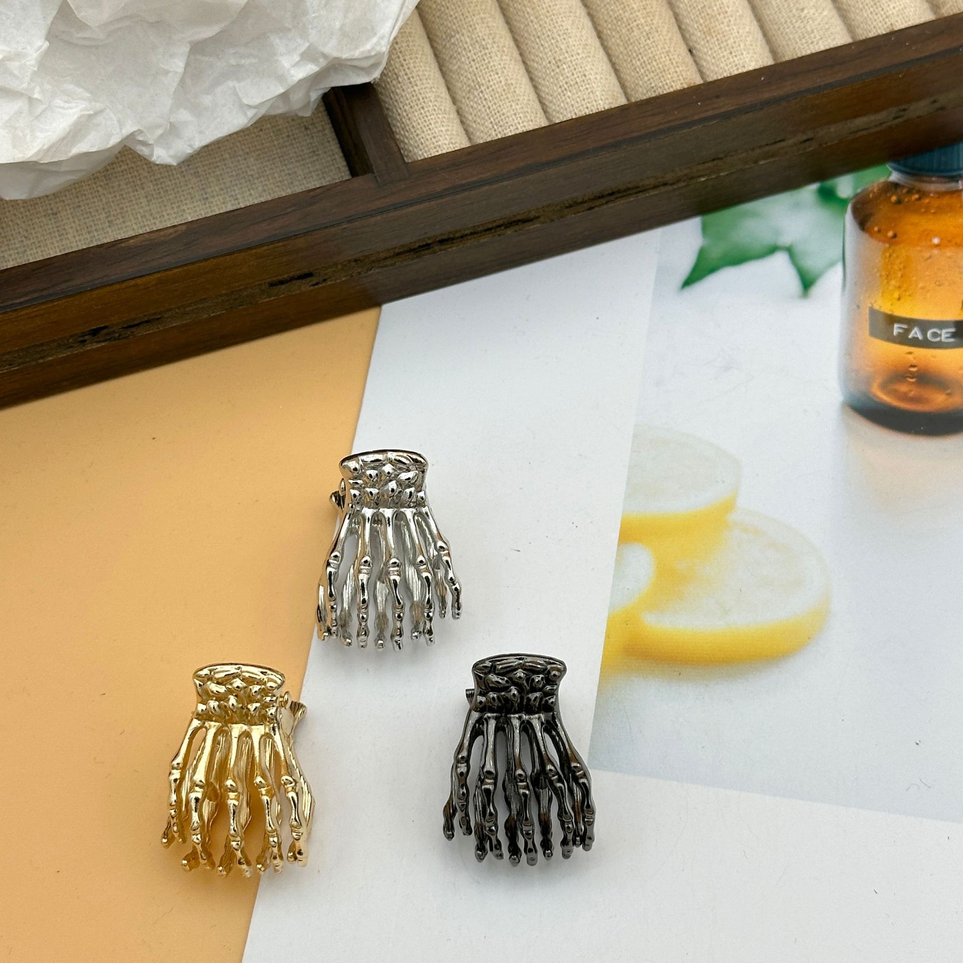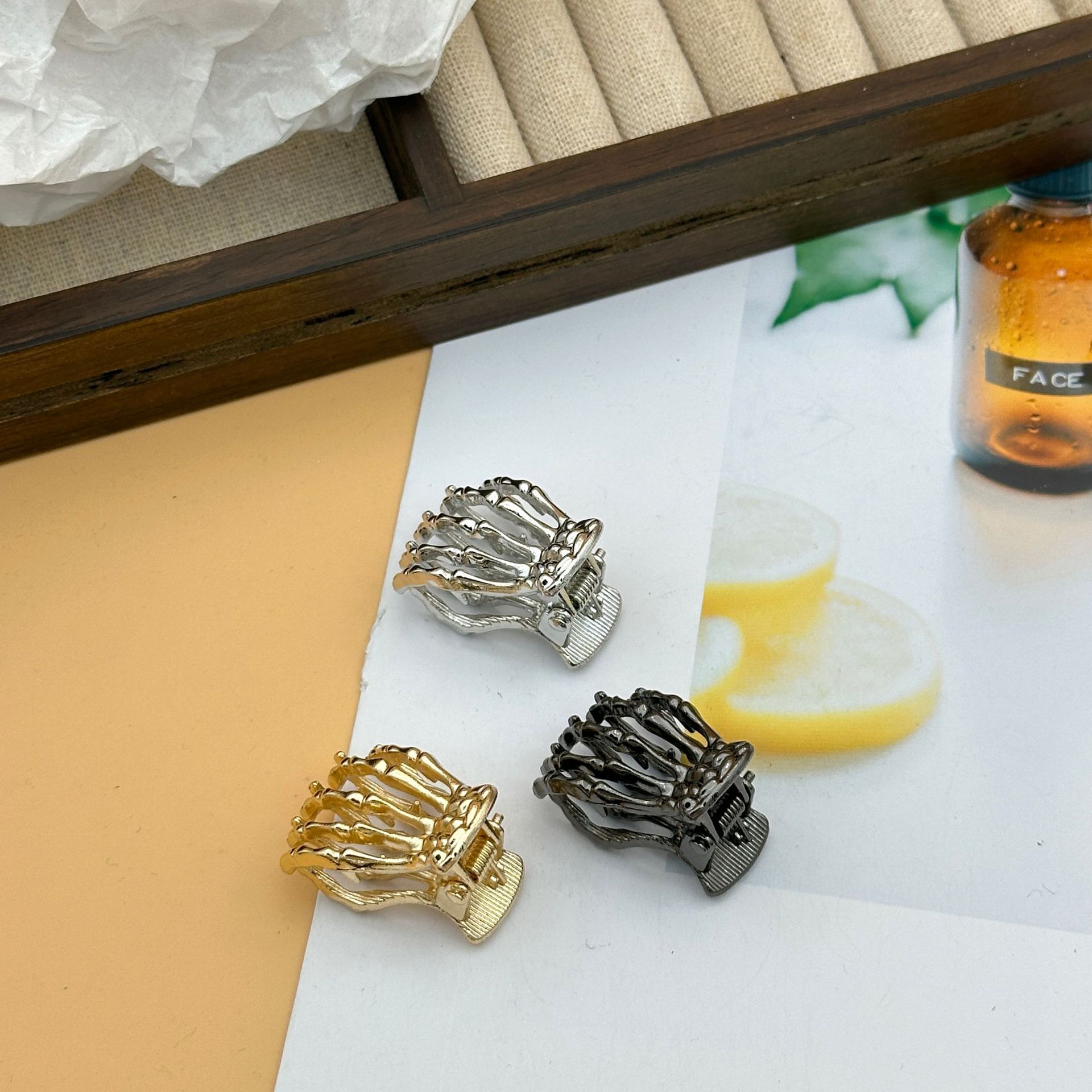할로윈 고딕 스컬 그랩 클립 폴드 다크 스타일 합금 헤어 헤어 디스크 헤어 상어 클립 폰테일 헤어 액세서리의 뒷면을 잡아