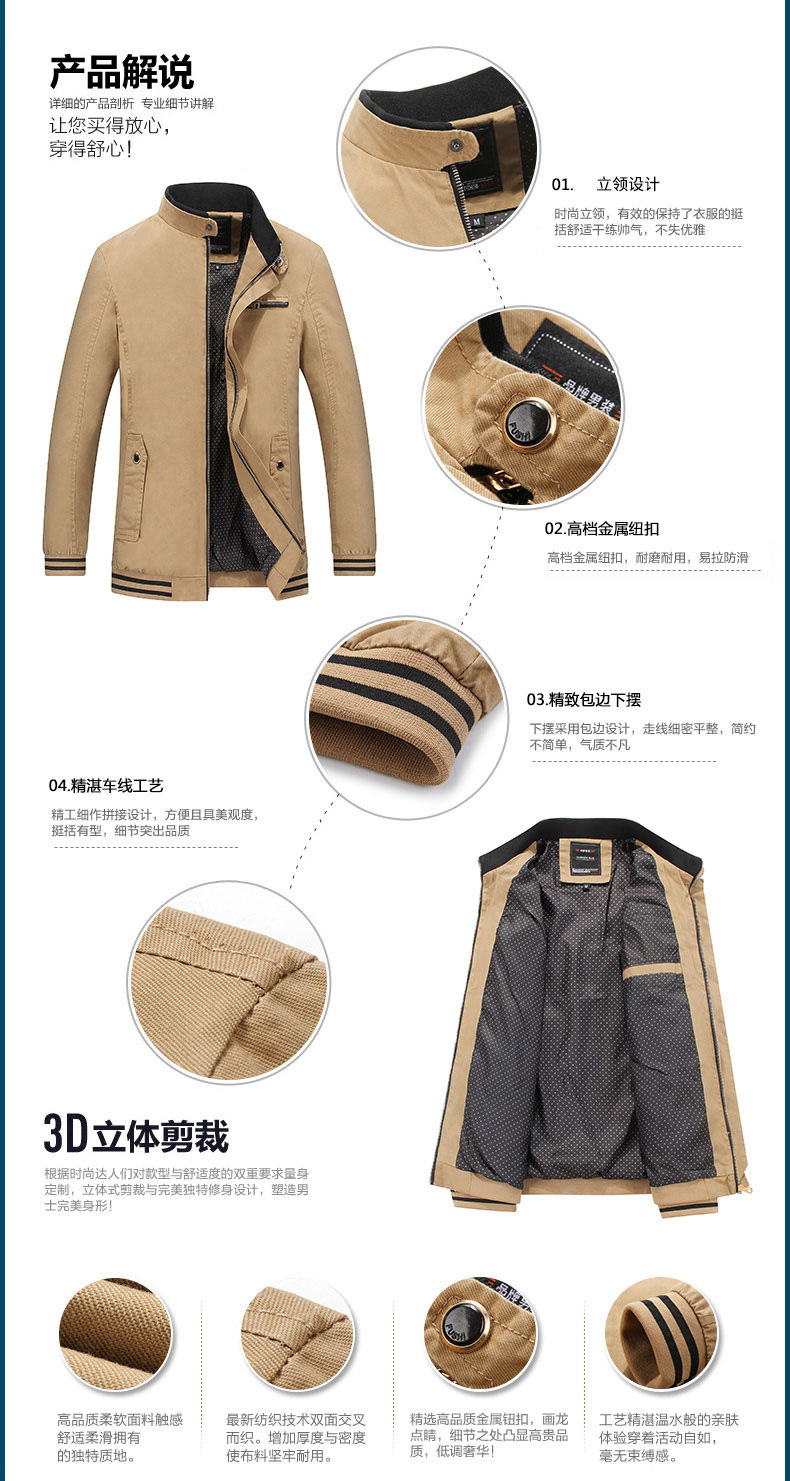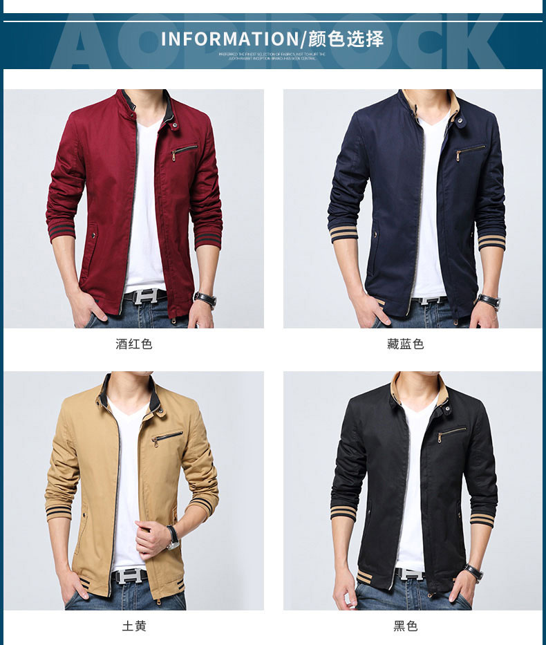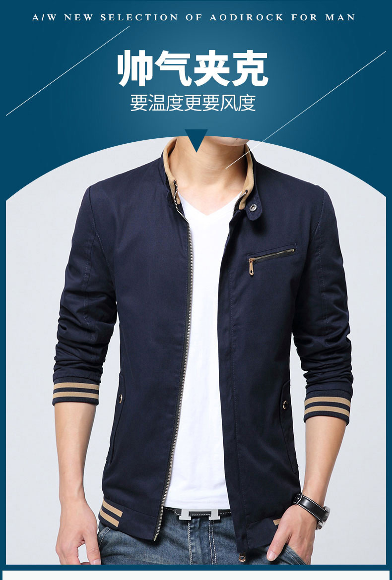 국경 간 봄과 가을 순면 재킷 한국 스타일 슬림 핏 수직 칼라 유행 재킷 남성 청소년 캐주얼 얇은 재킷 작업복스토어 가기