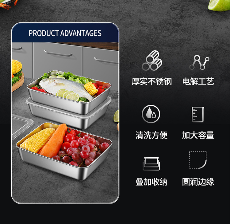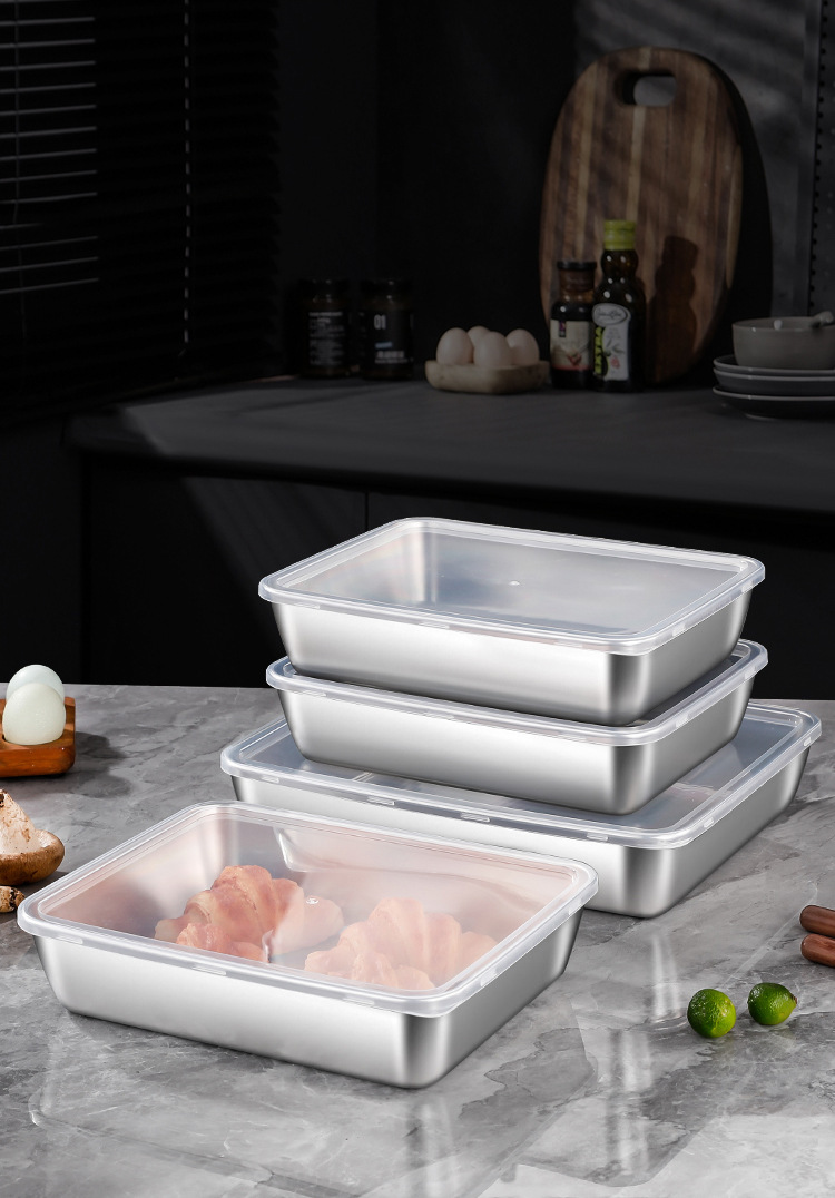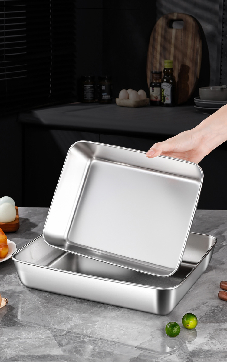 뚜껑이있는 두꺼운 스테인레스 스틸 스퀘어 플레이트 상업용 바베큐 플레이트 스톨 티라미수 박스 스시 트레이 타월 플레이트