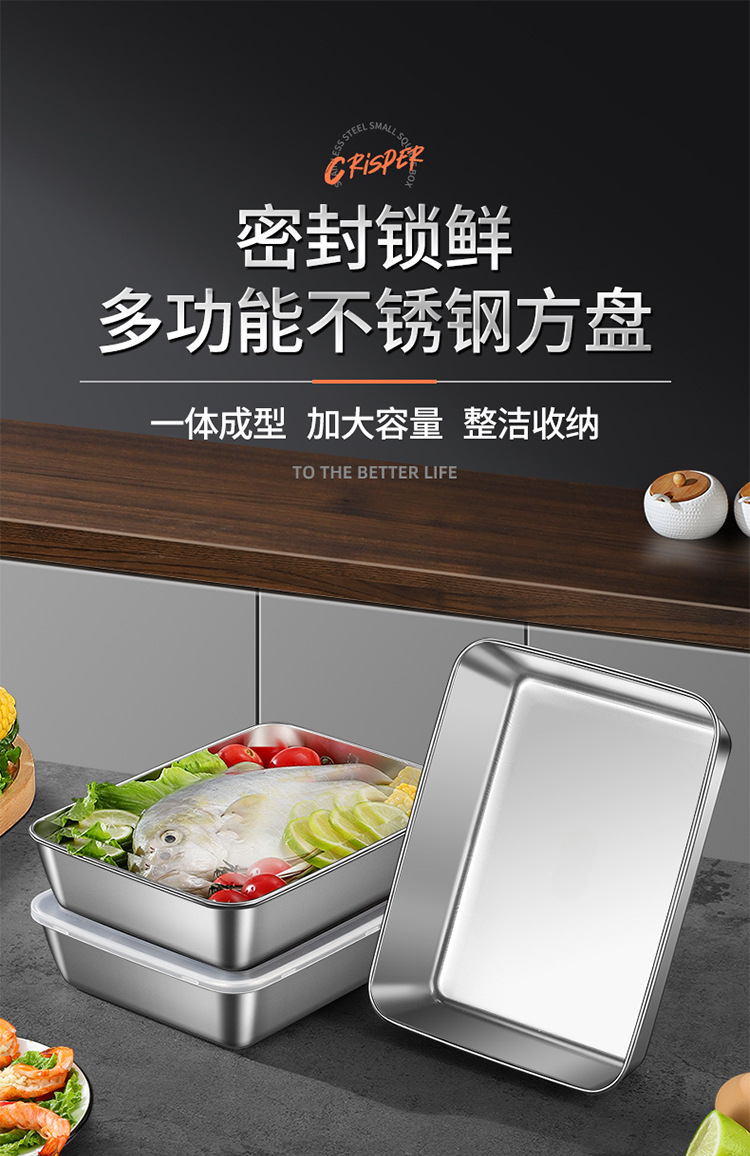 뚜껑이있는 두꺼운 스테인레스 스틸 스퀘어 플레이트 상업용 바베큐 플레이트 스톨 티라미수 박스 스시 트레이 타월 플레이트스토어 가기