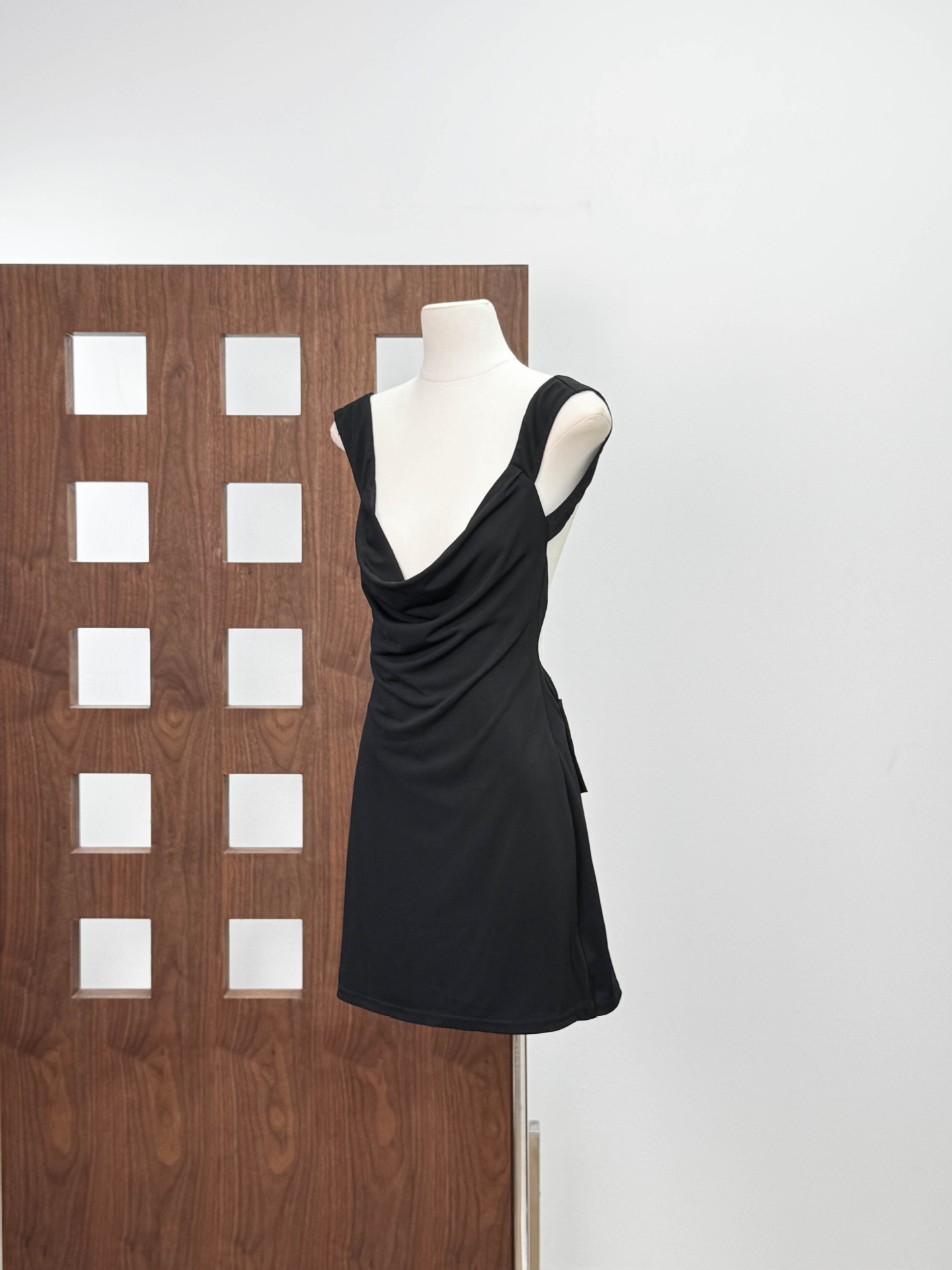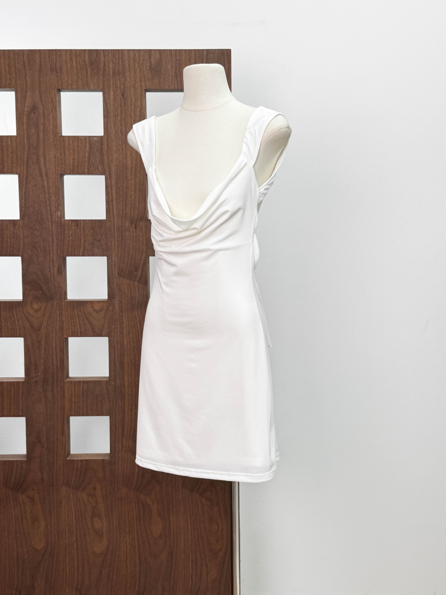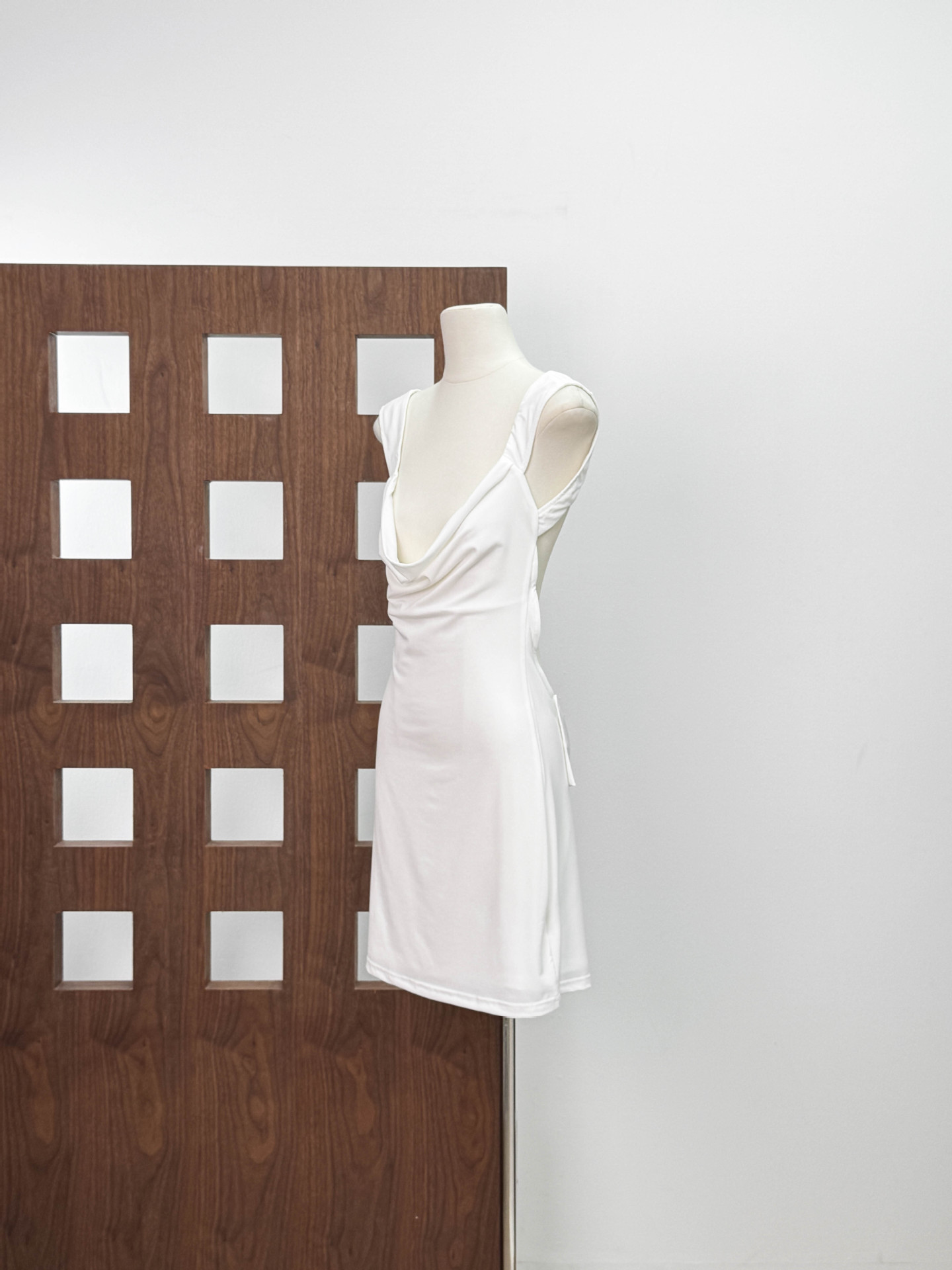 Tigermist 25ss 호주 디자인 새틴 활 뷰티 백 장식 섹시한 로우 컷 슬링 미니 원피스스토어 가기
