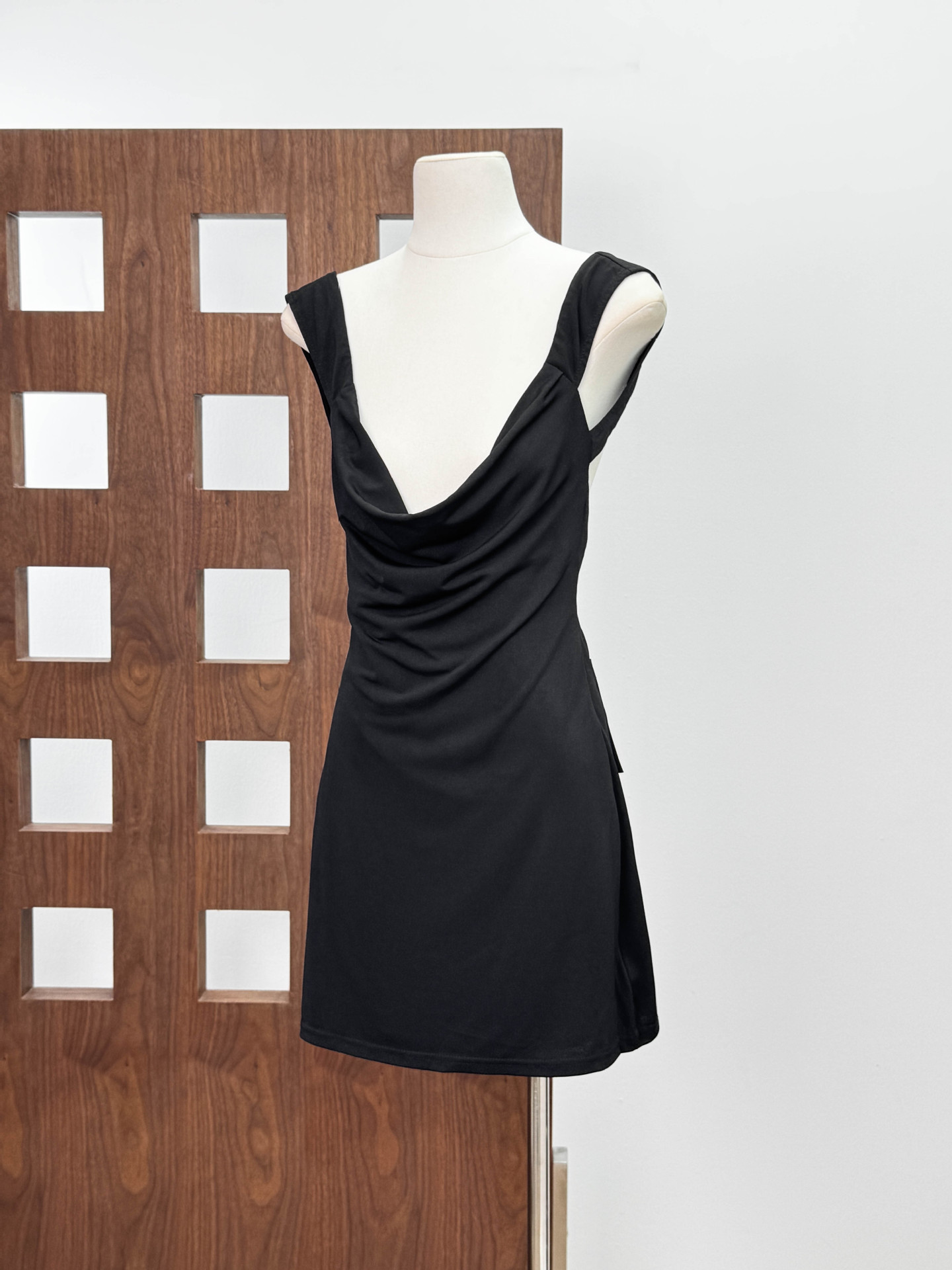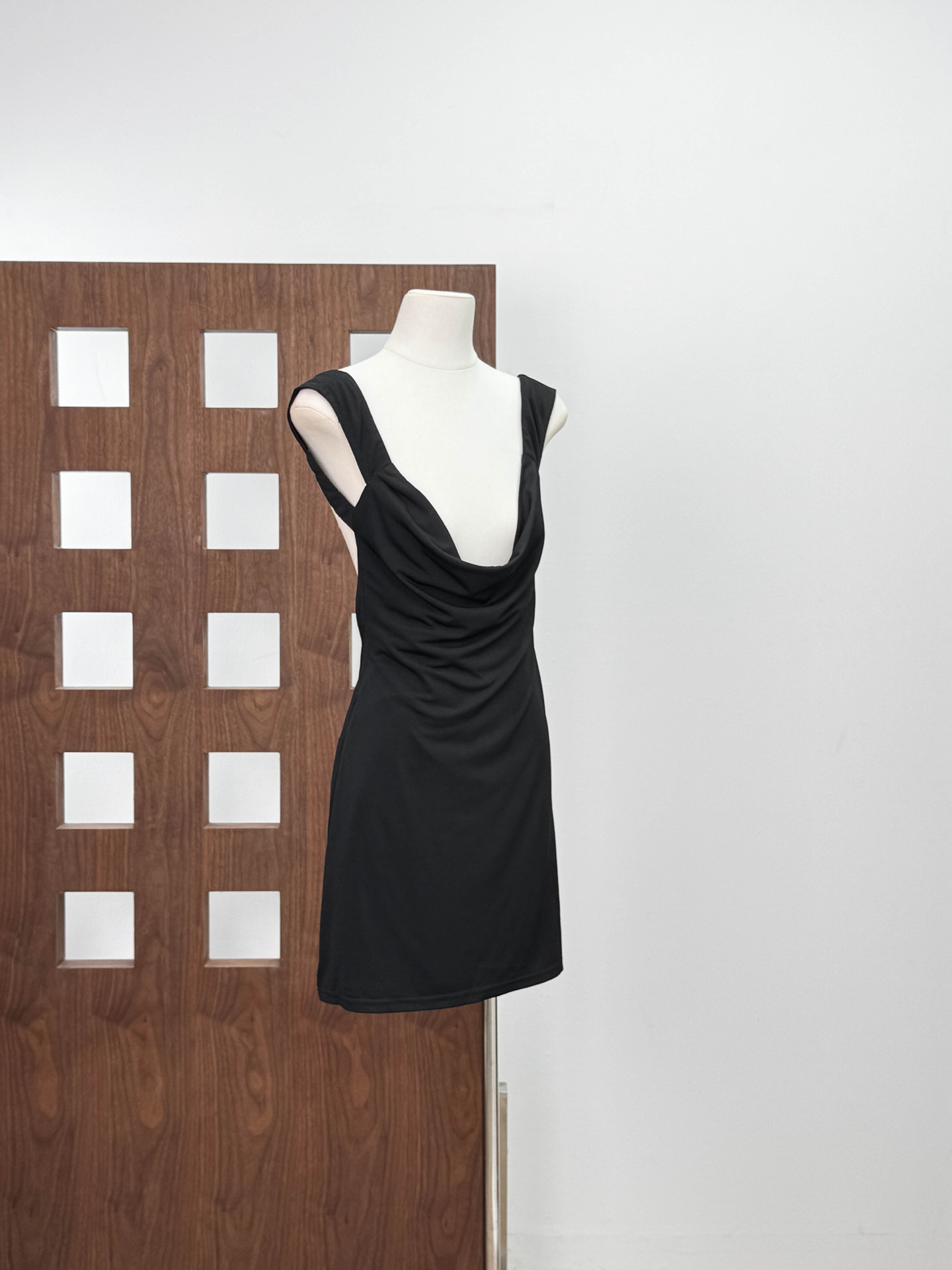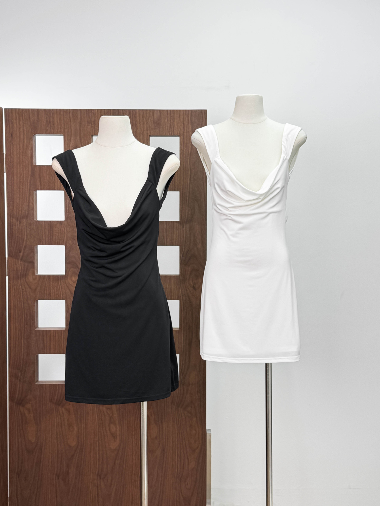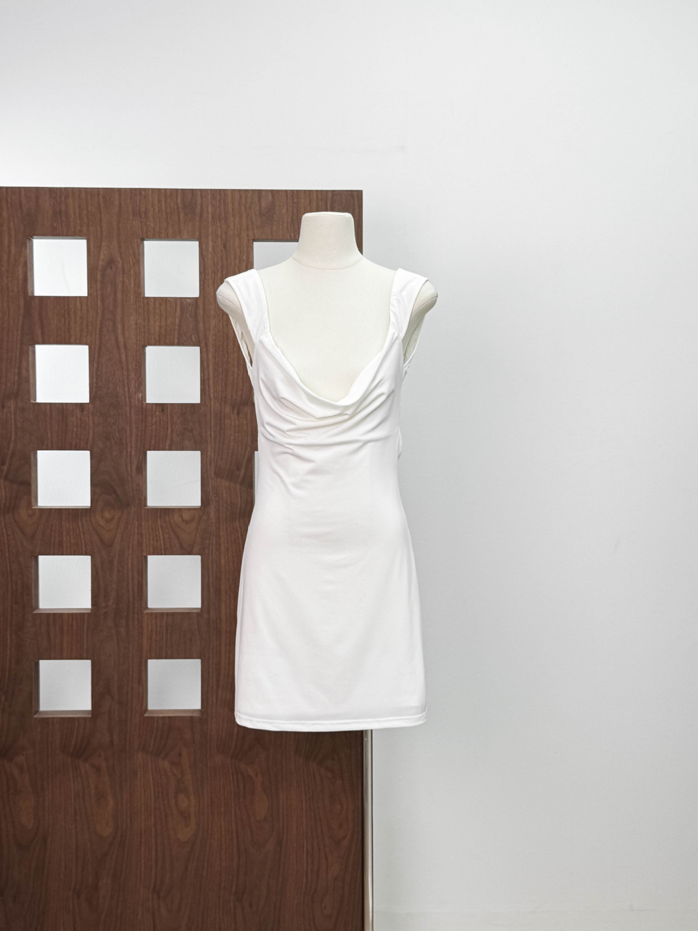 Tigermist 25ss 호주 디자인 새틴 활 뷰티 백 장식 섹시한 로우 컷 슬링 미니 원피스스토어 가기