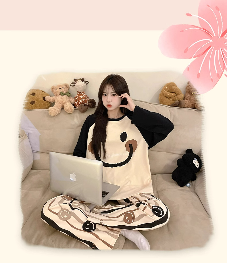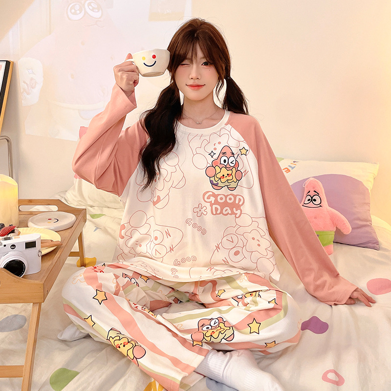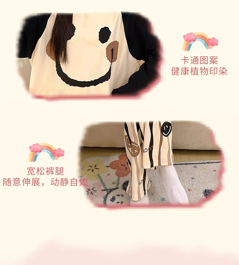 봄과 가을 플러스 뚱뚱한 플러스 사이즈 잠옷 여성 200kg 통통녀 웃는 얼굴 편안한 긴 소매는 가정용 옷을 입을 수 세트
