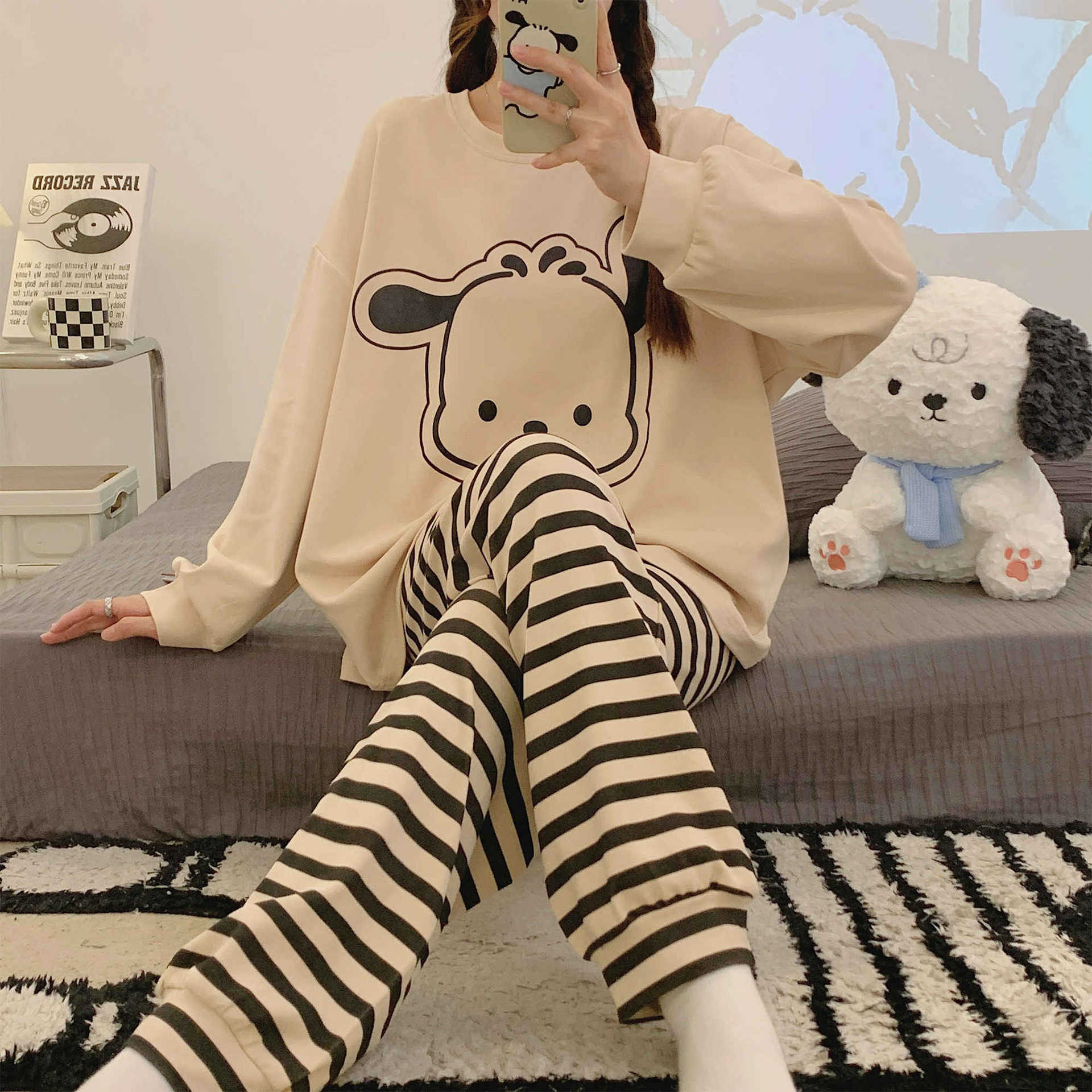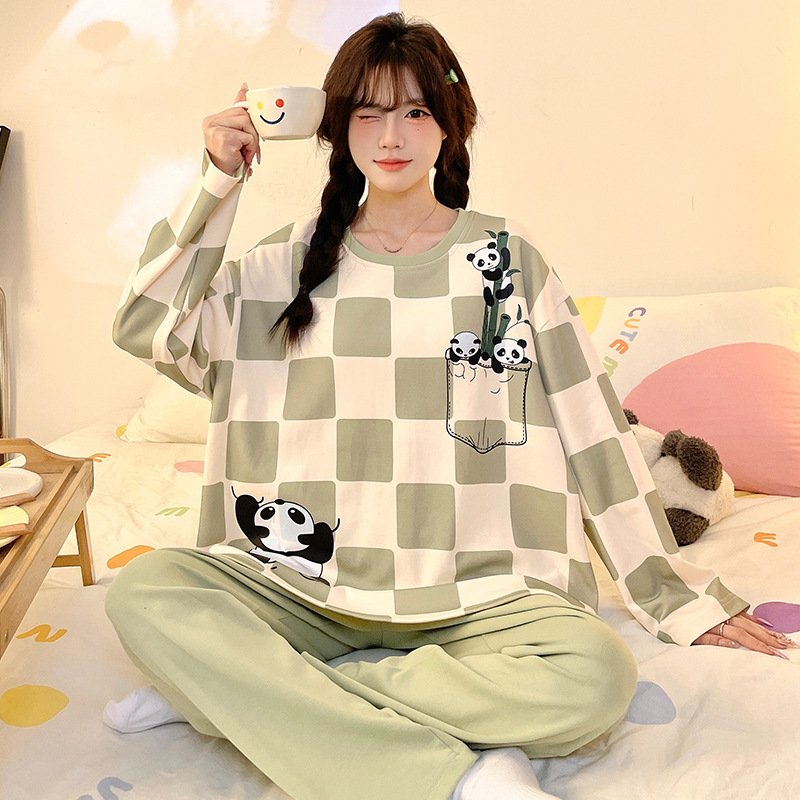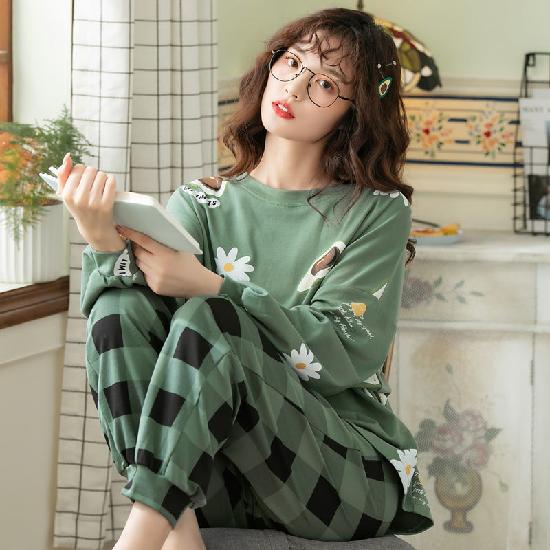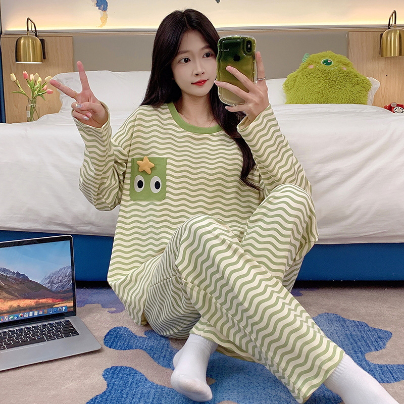봄과 가을 플러스 뚱뚱한 플러스 사이즈 잠옷 여성 200kg 통통녀 웃는 얼굴 편안한 긴 소매는 가정용 옷을 입을 수 세트스토어 가기