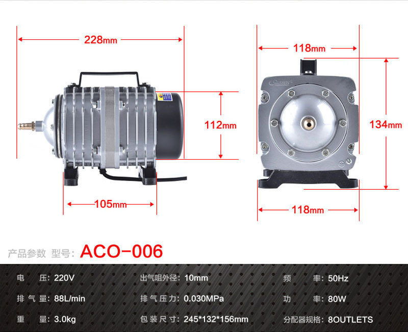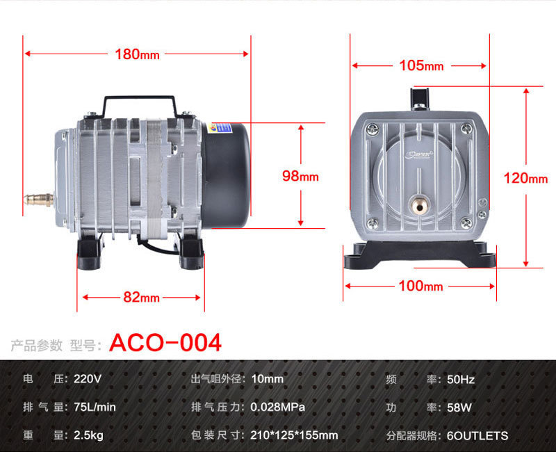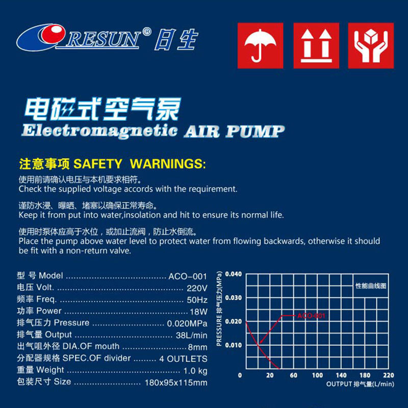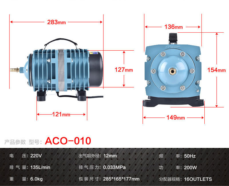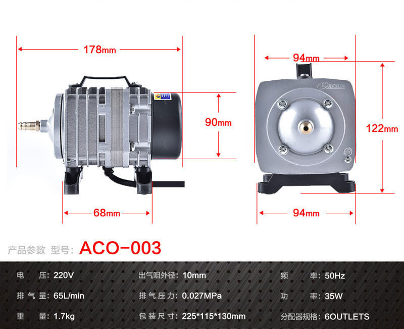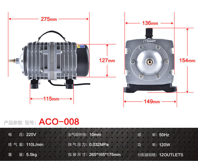 공장 판매 Risheng ACO 시리즈 전자기 공기 펌프 물고기 탱크 산소 연못 양식 산소 펌프 호텔스토어 가기