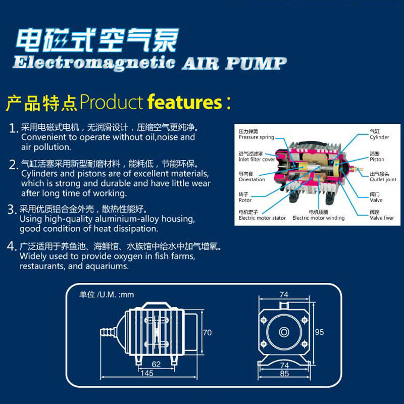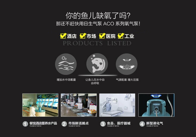 4、广泛用于池塘、海鲜馆,水族馆中鱼儿的加气增氧。