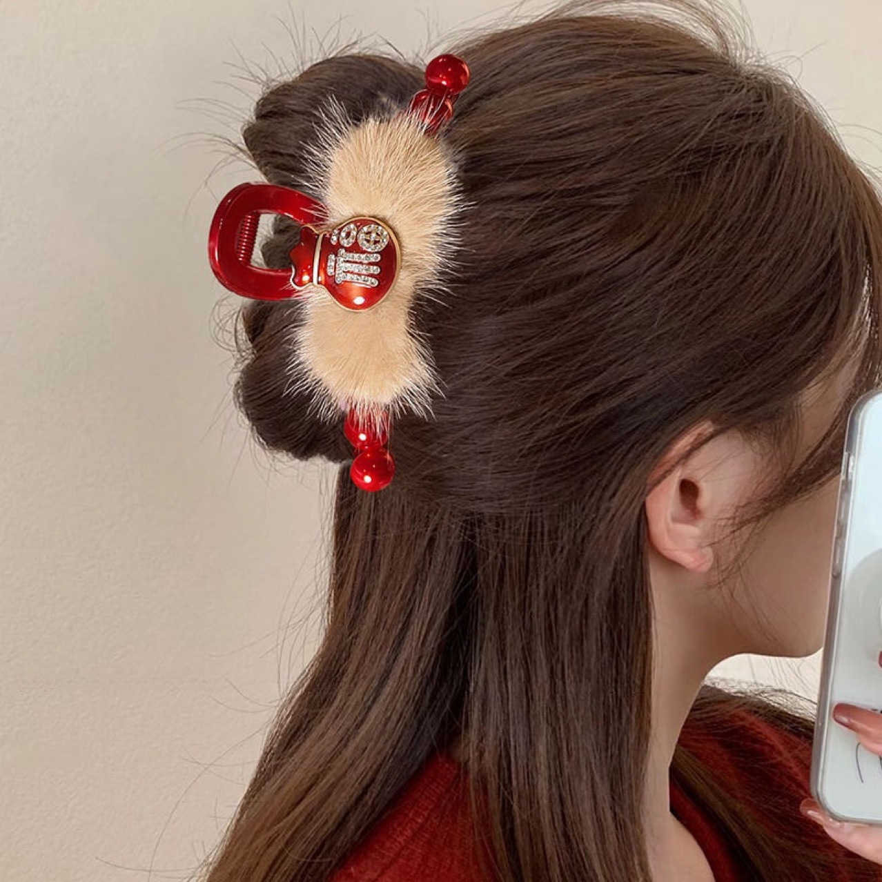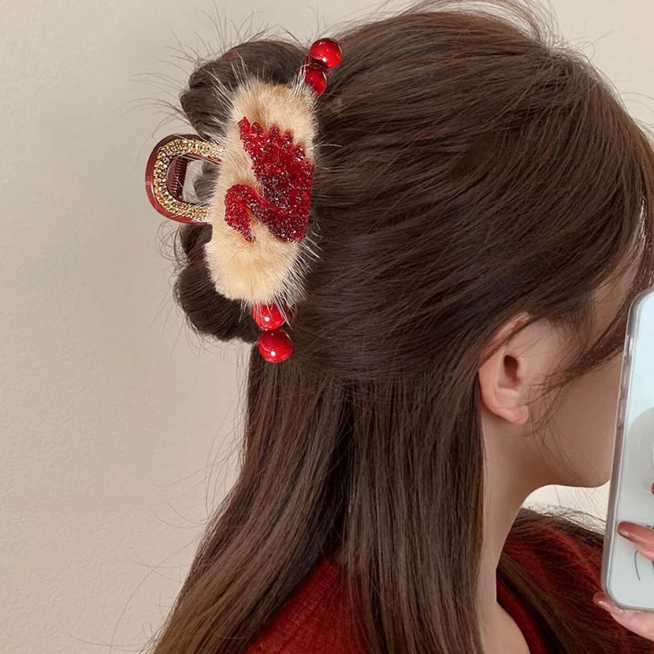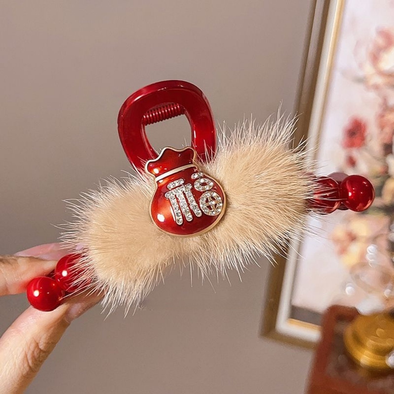 슈퍼 요정 빨간 봉제 잡아 클립 여성 새해 축제 분위기 머리 머리 상어 클립 머리 뒤로 잡아스토어 가기