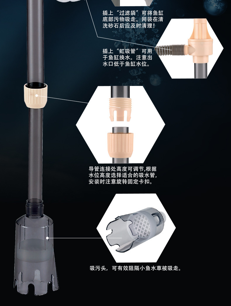 亲亲们,AS-615A/B洗沙器主要功能是给鱼缸排水,过滤鱼缸的污垢,清洁鱼缸,并不具备低水位给鱼缸加水