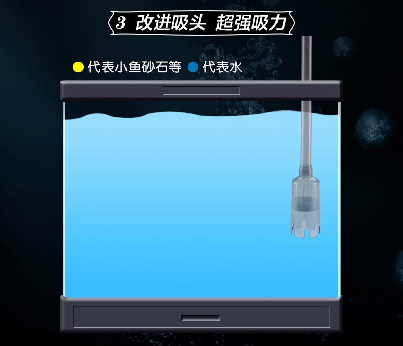 亲,其实不小的哦,可能亲在吸鱼粑粑的时候没有把7号配件洗沙头拆卸下来,洗沙头的作用是把吸力分化掉,可以有效防止把沙子吸上来(注意:海沙、细沙不适合使用);建议亲在吸鱼粑粑的时候把7号配件洗沙头拆卸下来,直接用管子吸就好