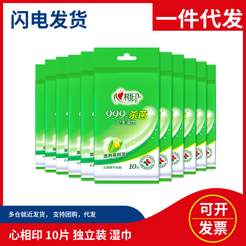 하트 인쇄 물티슈 위생 물티슈 100개 10팩 물에 젖을 수 있는 독립 포장 성인 청소 휴대용 포장
