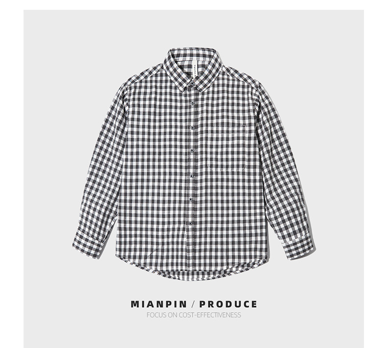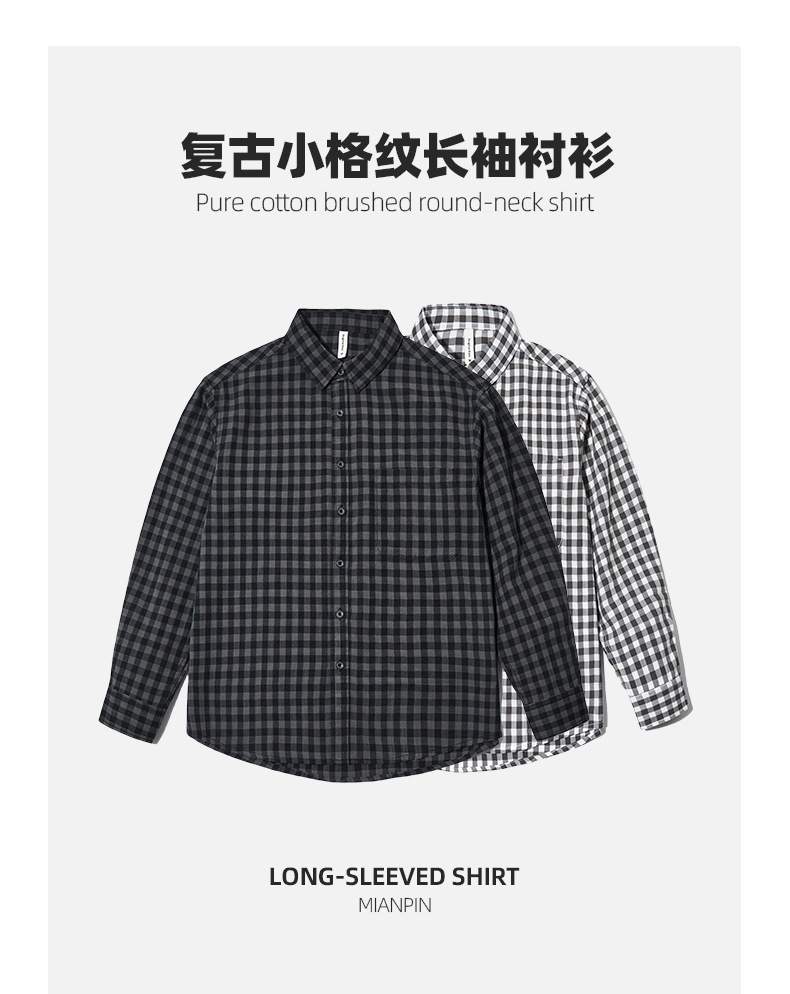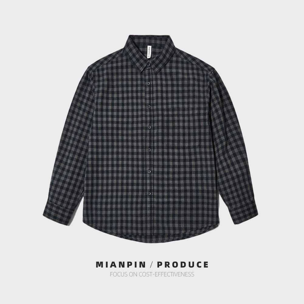 봄가을 남성 캐주얼 긴팔 셔츠 일본풍 다용도 작은 격자무늬 셔츠 약간 루즈한 상의 D288 레트로 캐주얼스토어 가기