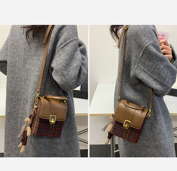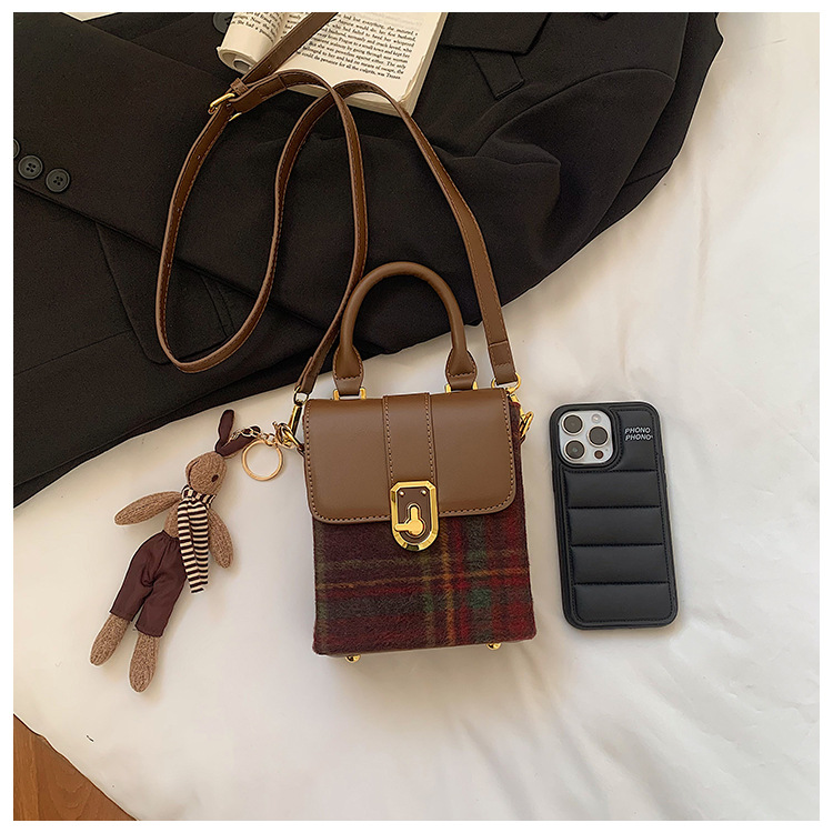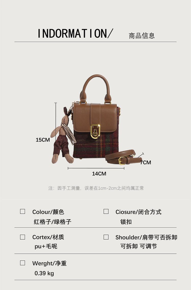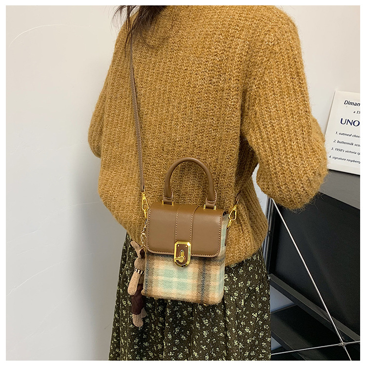 화장품 가방 크로스 보더 뉴 마오 니 양털 하이 엔드 올 매치 미니 격자 도매 휴대용 어깨 크로스 바디 작은 사각형 가방스토어 가기