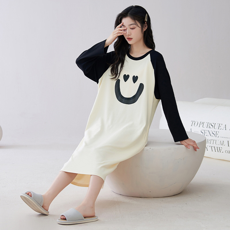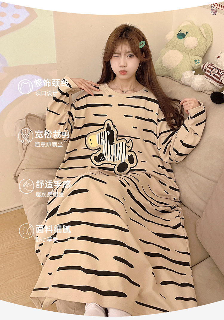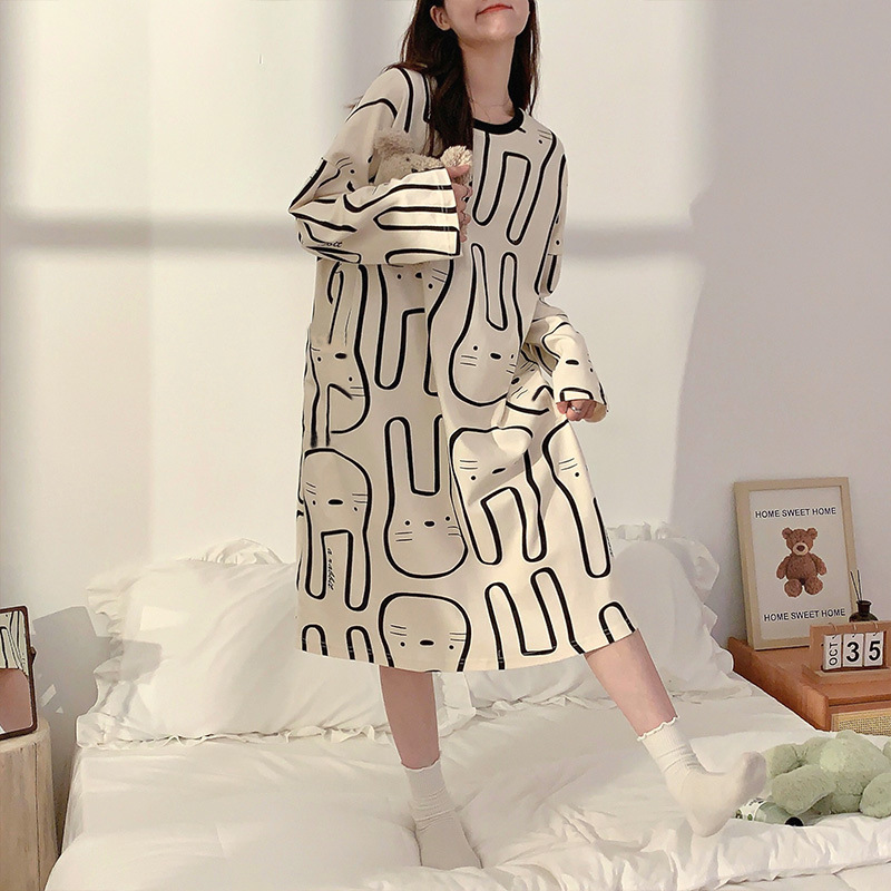 잠옷 여성의 봄과 가을 긴 소매 귀여운 만화 캐주얼 얇은 느슨한 플러스 사이즈 잠옷 긴 가을 홈 옷