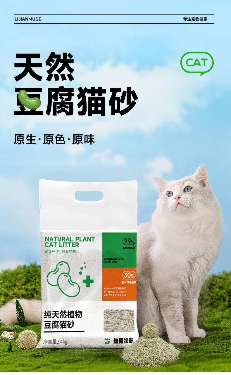 곡물 jianmu 형 천연 식물 두부 고양이 쓰레기 먼지가없는 끈적 거리지 않는 바닥 플러시 식 화장실 애완 동물 용품 고양이 쓰레기스토어 가기