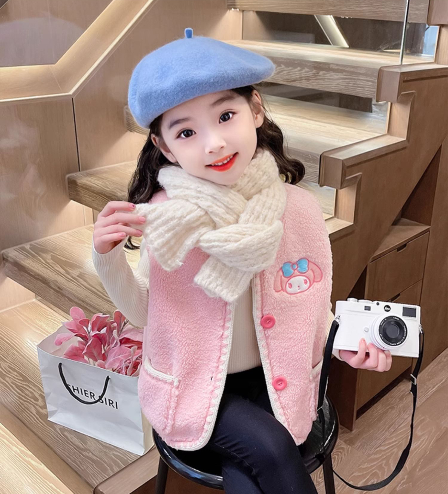 2025 새로운 아동복 소녀 가을과 겨울 개 헤어 조끼 귀여운 달콤한 어린 소녀 조끼 머리카락스토어 가기