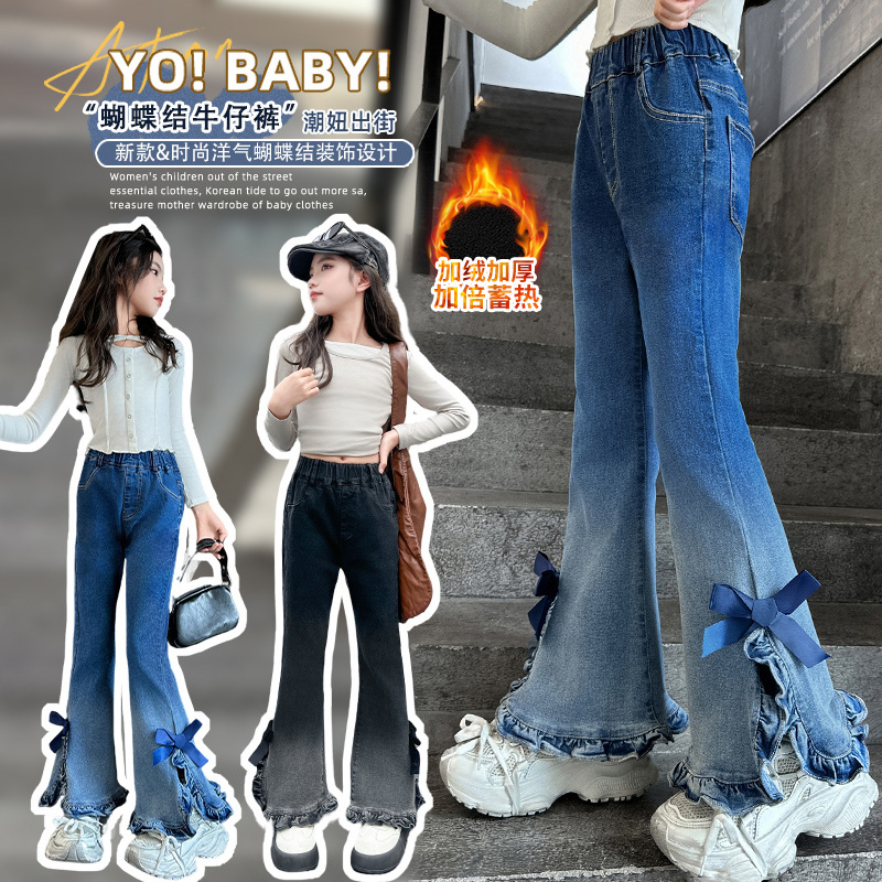 소녀 마이크로 플레어 바지 봄과 가을 어린이 가을 아우터 서양식 슬림 핏 바지 여성용 대형 어린이 가을 청바지스토어 가기
