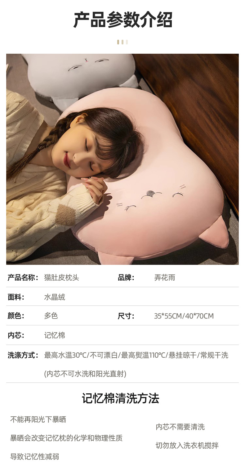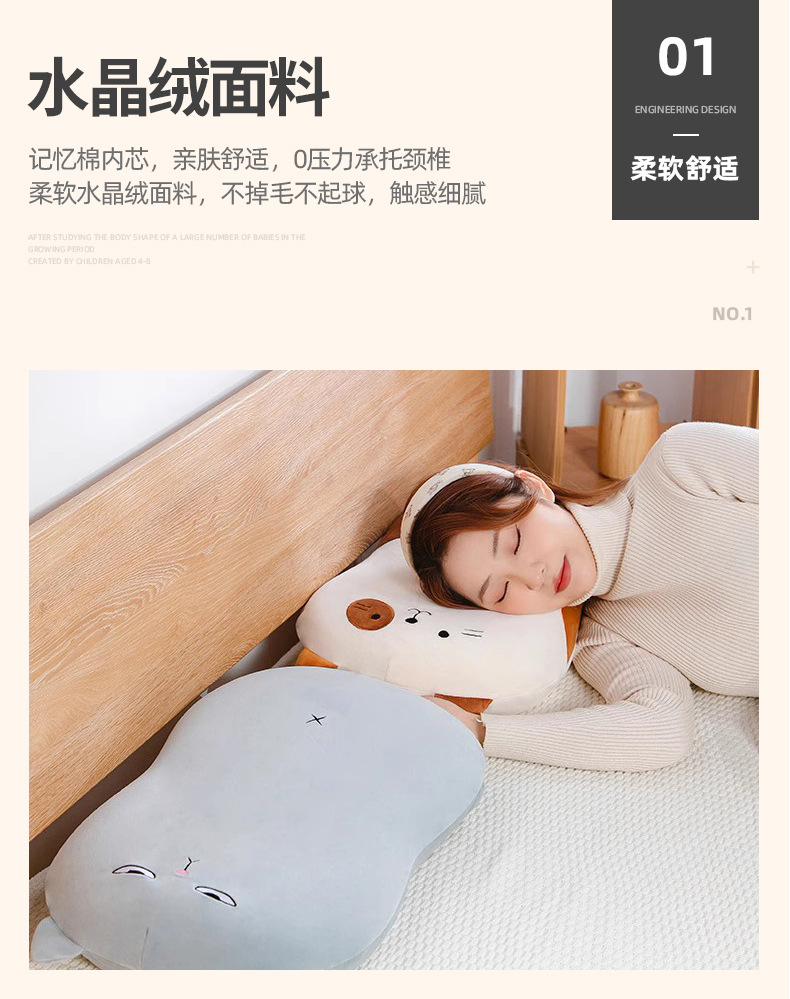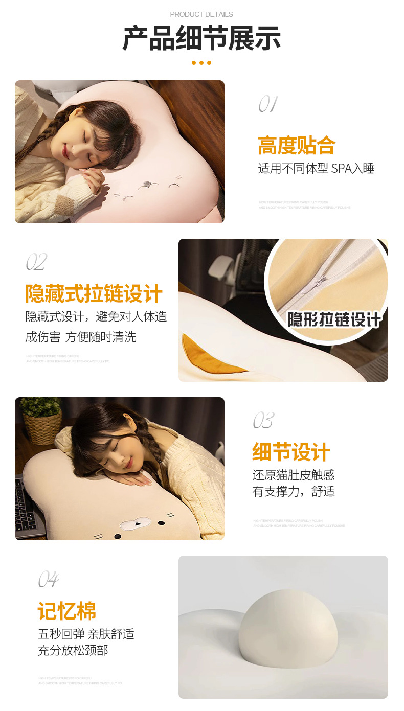 고양이 배 모양 베개, 느린 반발 메모리폼, 탈부착 가능한 베개 커버, 허리 보호 쿠션, 좌석 쿠션, 목 보호 베개, 어린이 옆으로 자는 베개