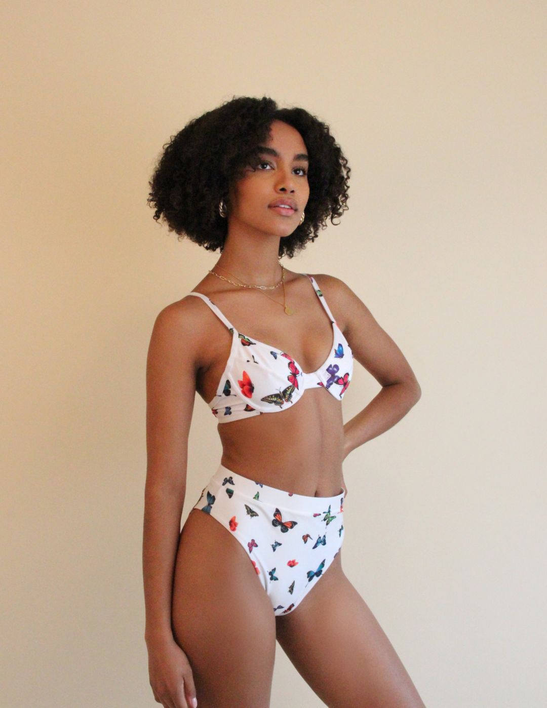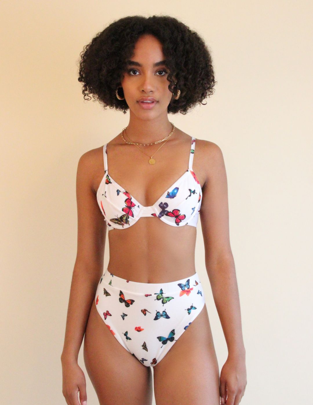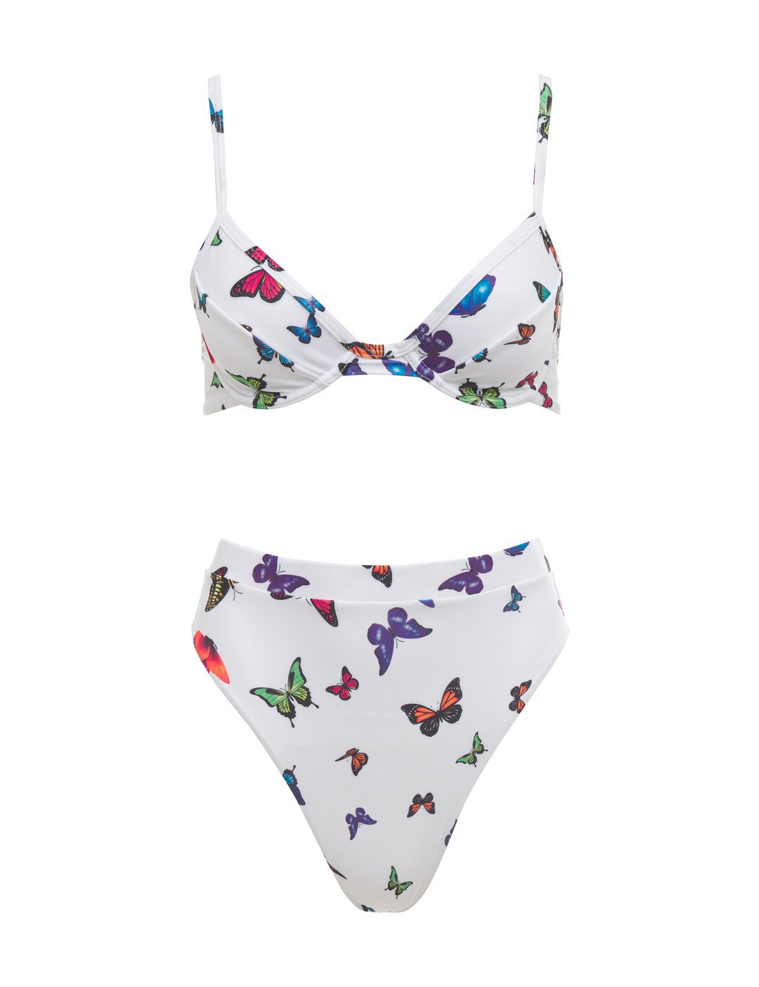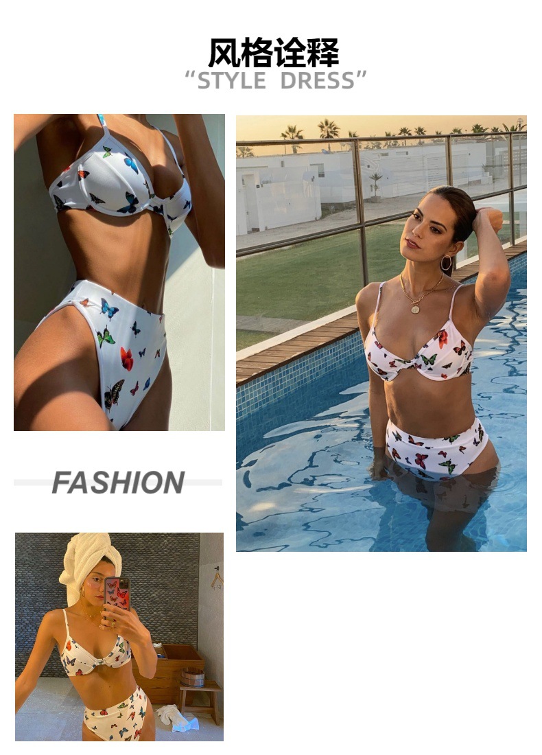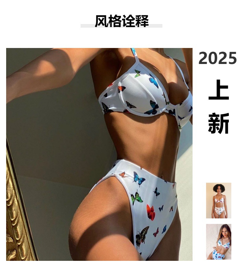2025 아마존 하이웨이스트 여성용 비키니 스틸테이프 소프트패드 나비 프린트 온천 수영복 여성용 스플릿 타입