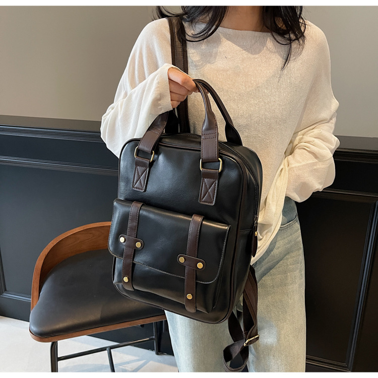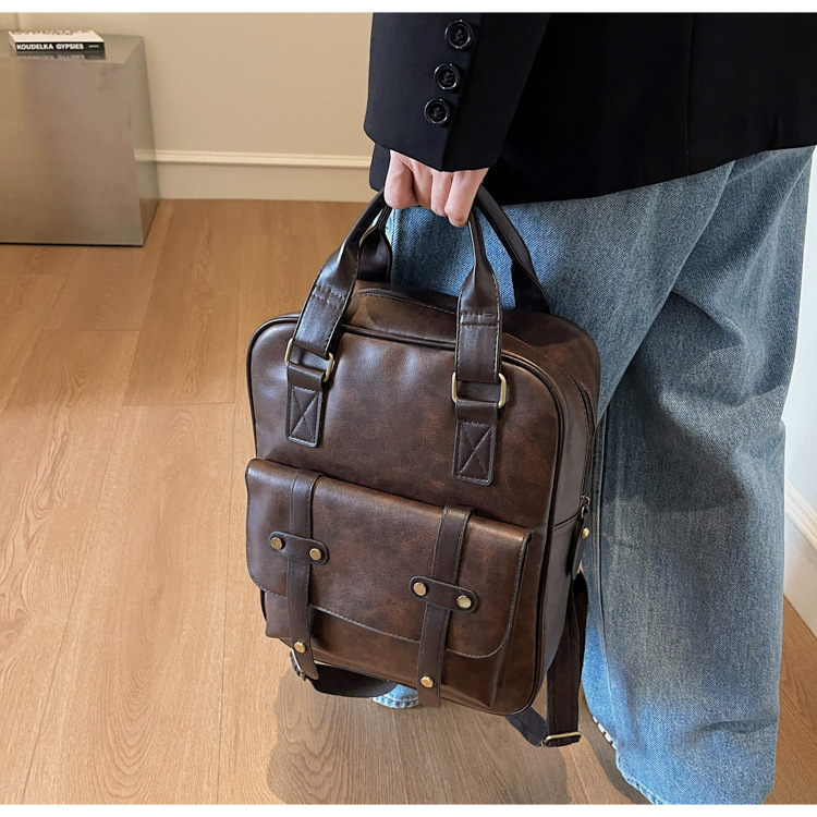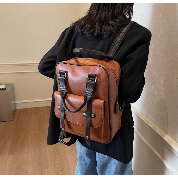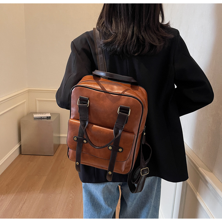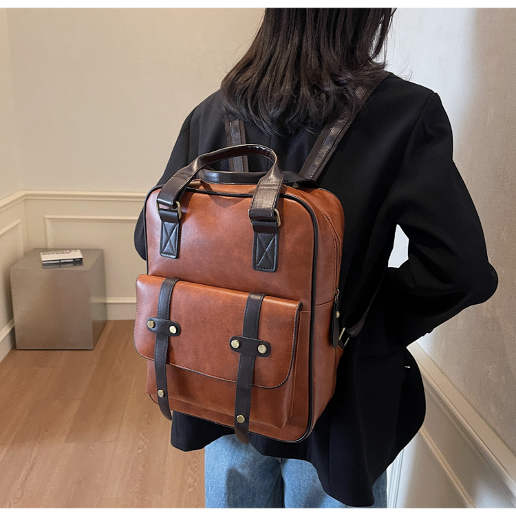대용량 레트로 핸드백 여성의 다기능 PU 섬유 학생 스쿨백 유행 캐주얼 여행 컴퓨터 배낭스토어 가기