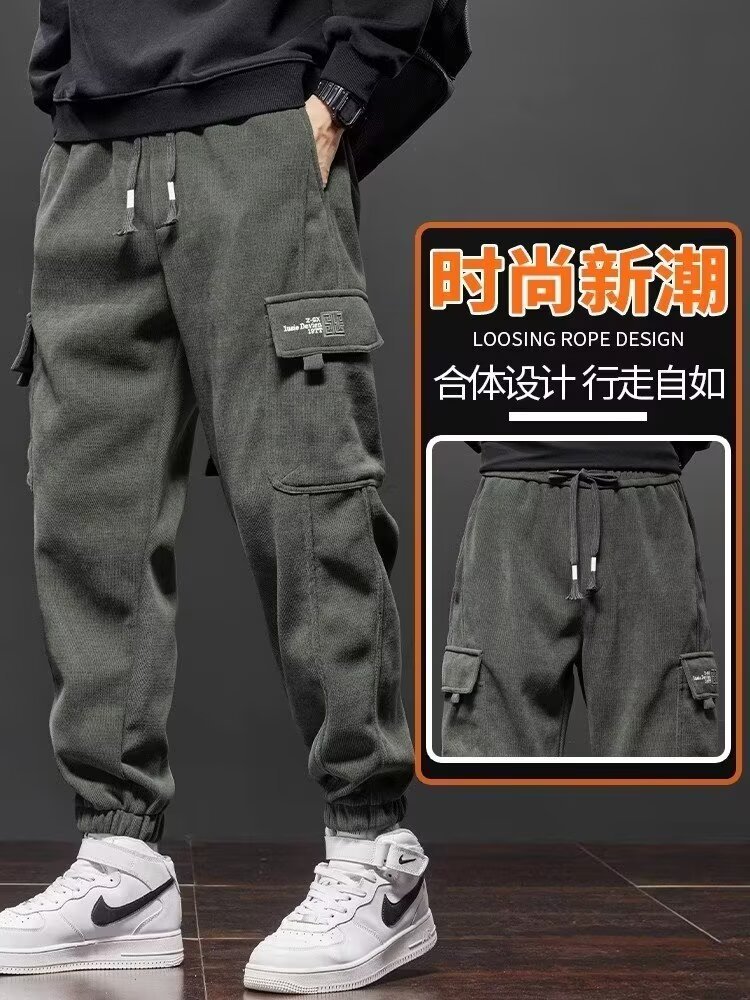 바지 남자 2024 가을과 겨울 새로운 패션 코듀로이 할란 일본 캐주얼 스포츠 러피안 잘 생긴 패션 롱 팬츠