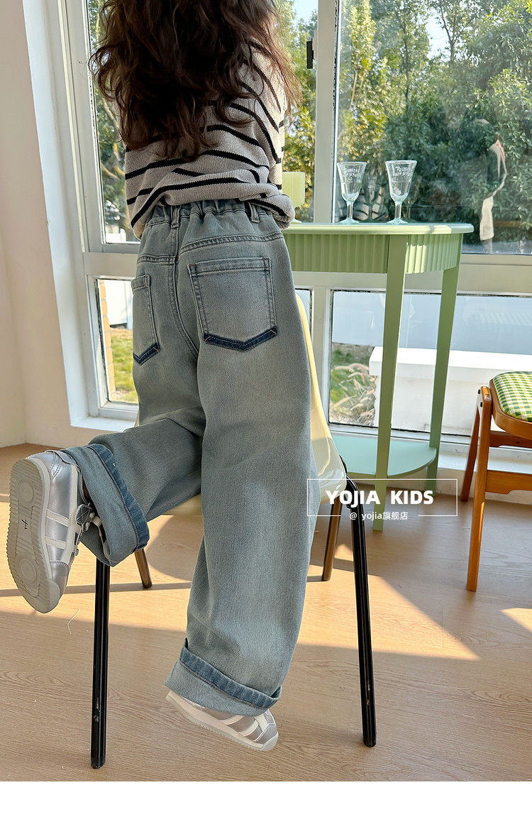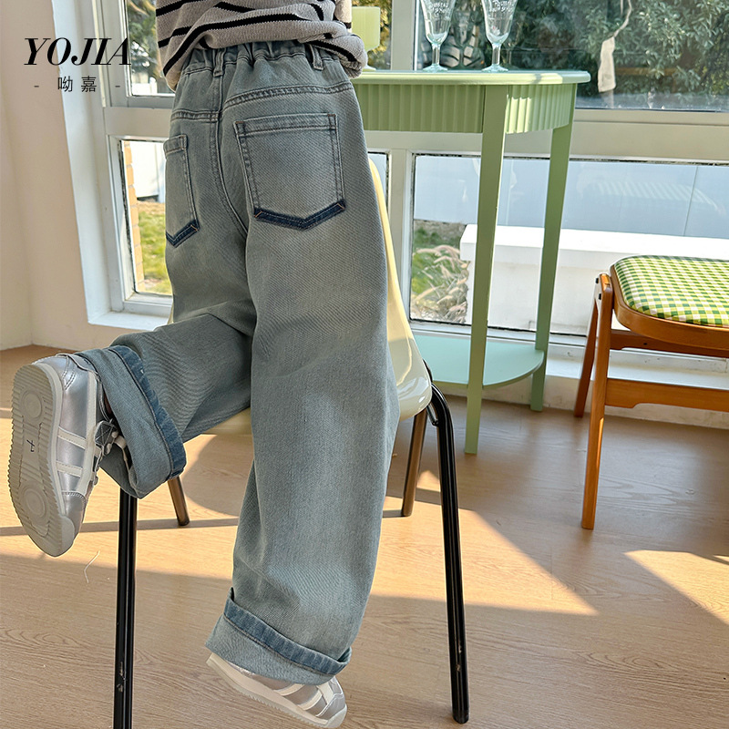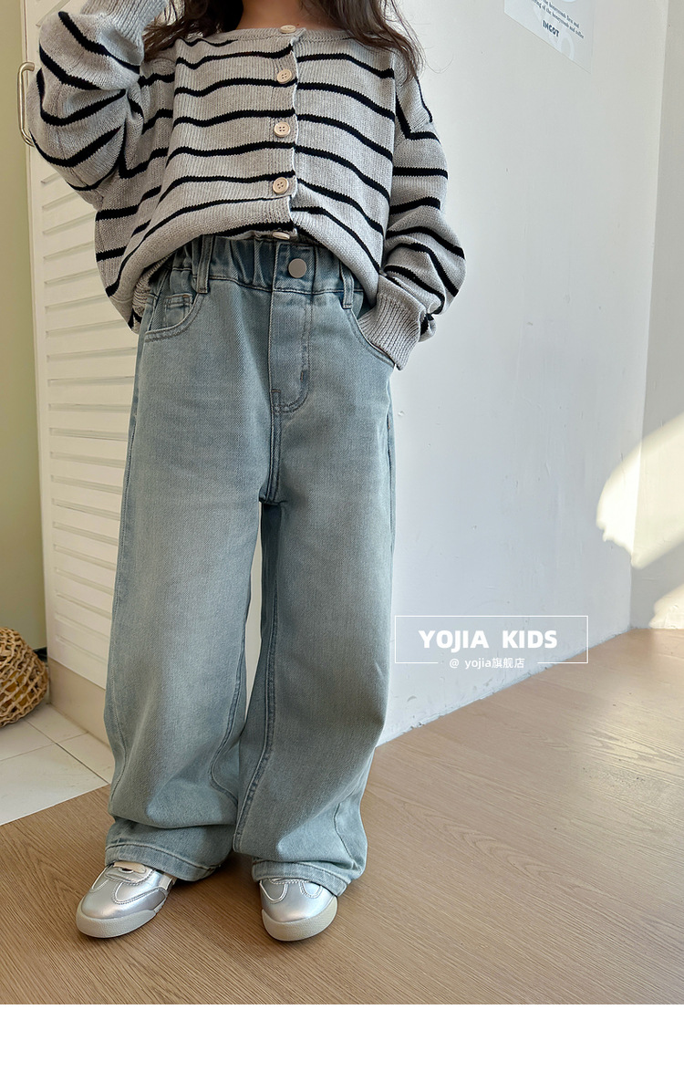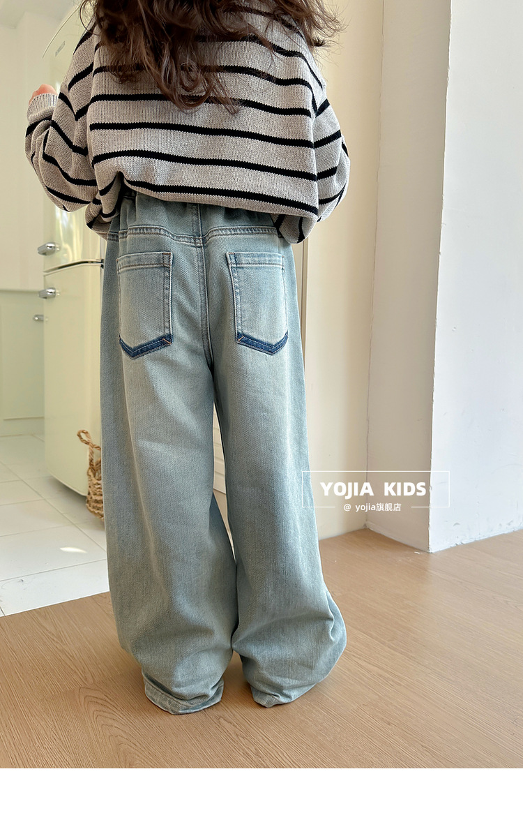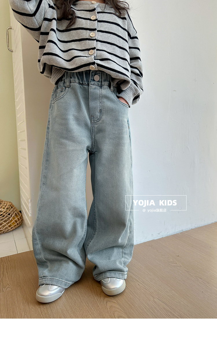 YOJIA 소녀 청바지 봄 2025 새로운 한국식 소녀 넓은 다리 바지 봄 어린이 바지스토어 가기
