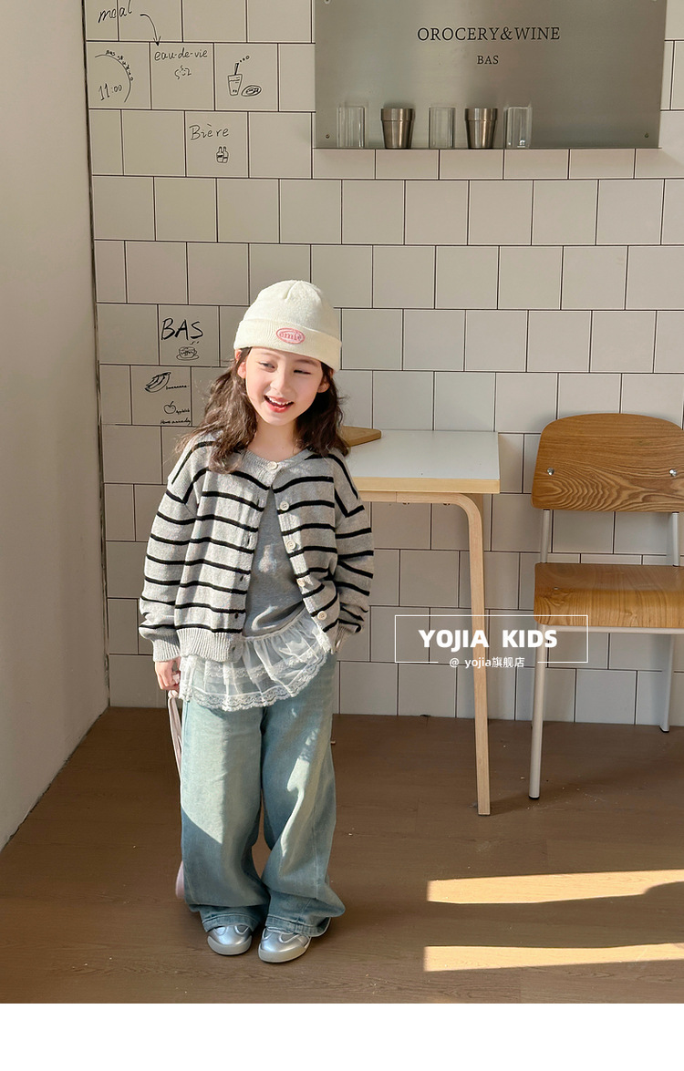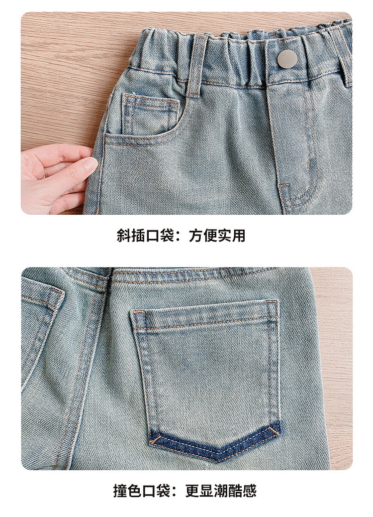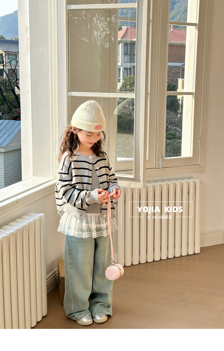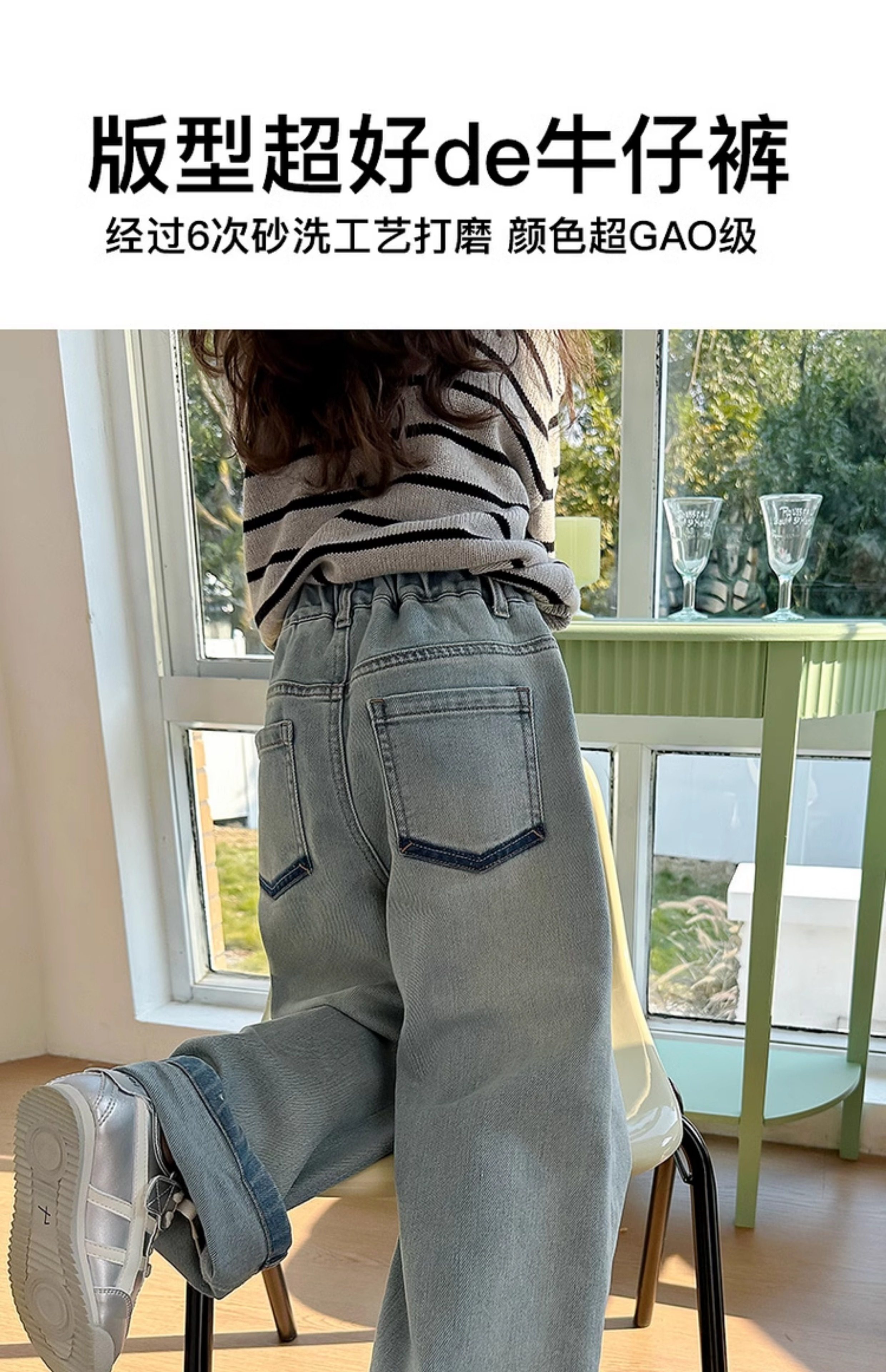 YOJIA 소녀 청바지 봄 2025 새로운 한국식 소녀 넓은 다리 바지 봄 어린이 바지스토어 가기
