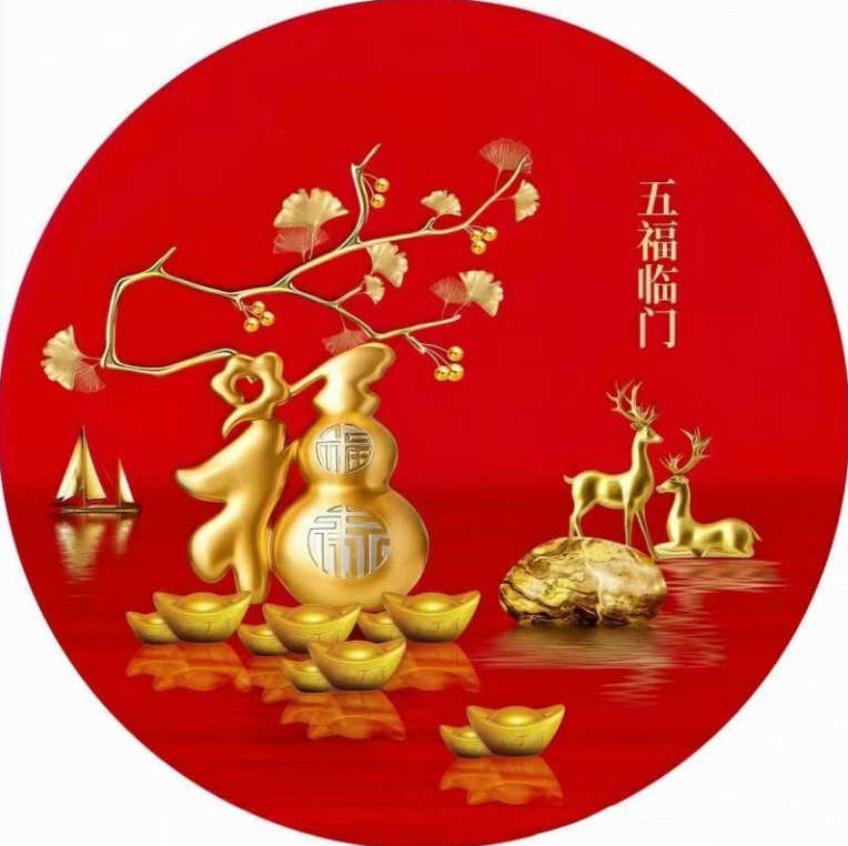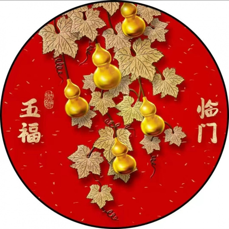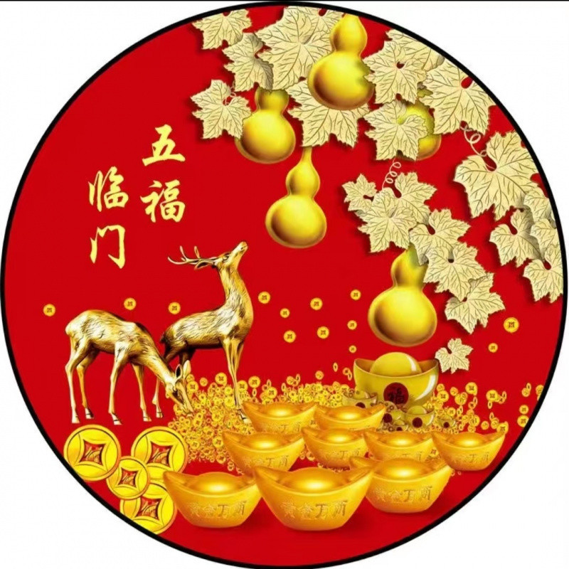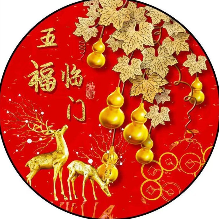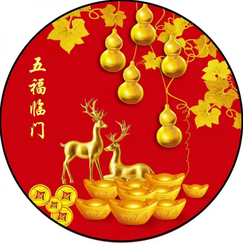 새로운 중국 스타일 Wufu Linmen Round Gourd Hallway 장식 그림 셀프 접착 레드 페인팅 거실 벽에 방수 자체 접착 그림