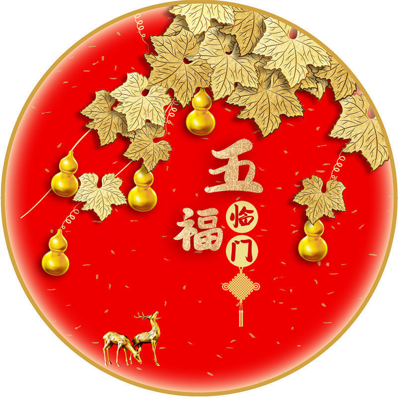 새로운 중국 스타일 Wufu Linmen Round Gourd Hallway 장식 그림 셀프 접착 레드 페인팅 거실 벽에 방수 자체 접착 그림스토어 가기