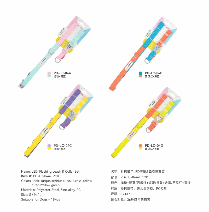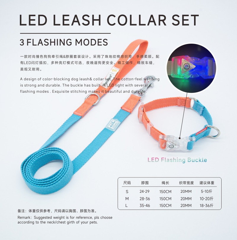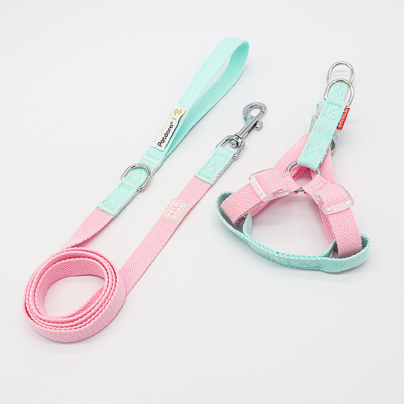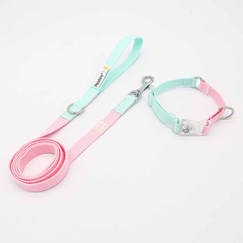 PETDORA 멋진 LED 버클 면화 개 견인 로프 가슴과 등 조정 가능한 질식 방지 개 목 반지 세트